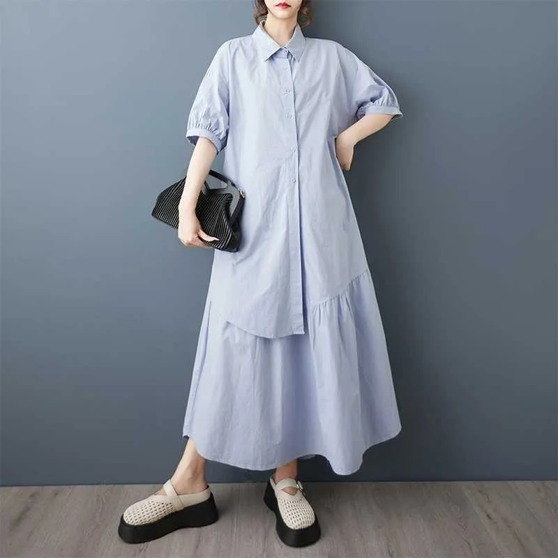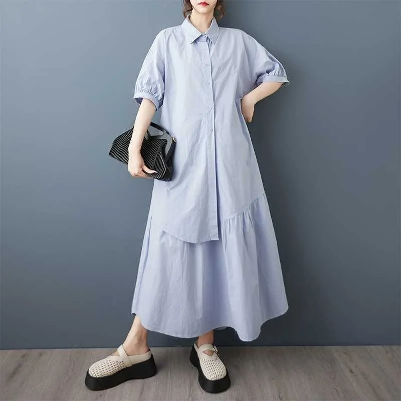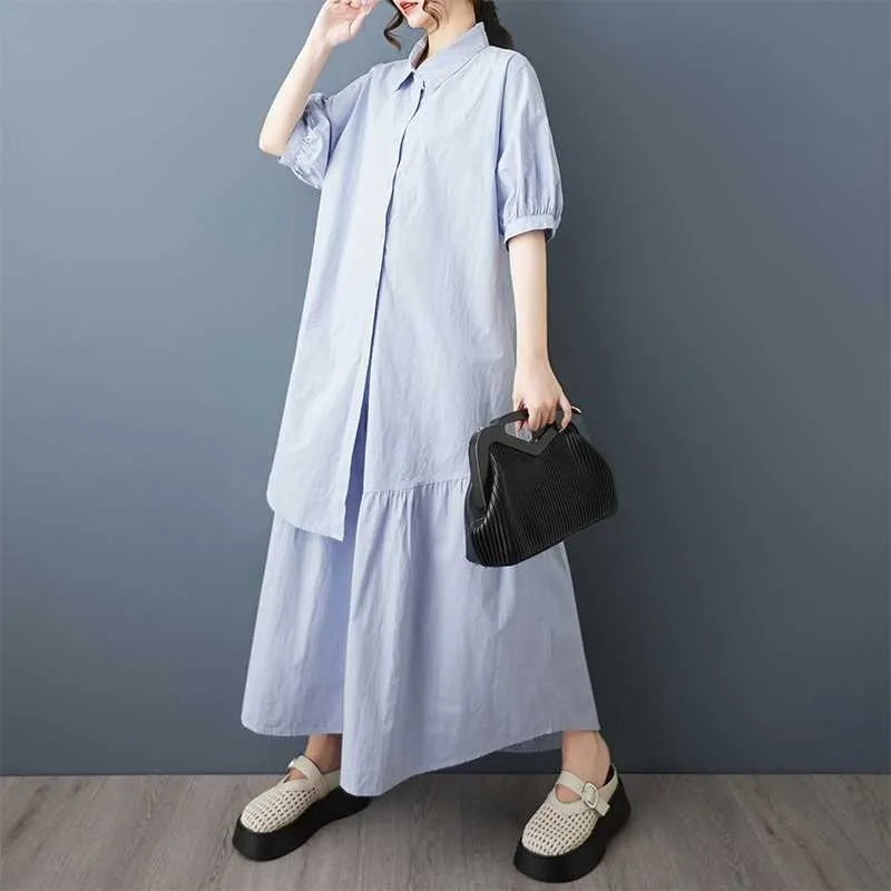 衣都精品- 新款韓版寬鬆大碼拼接短袖連衣裙