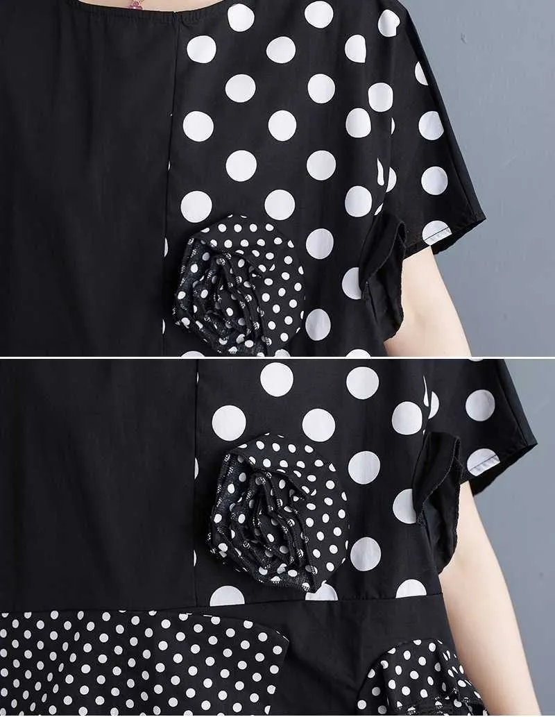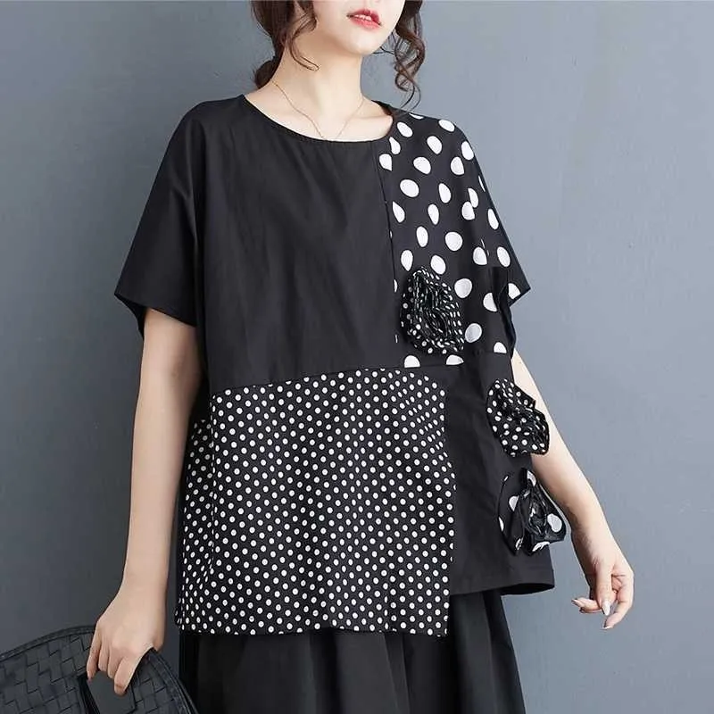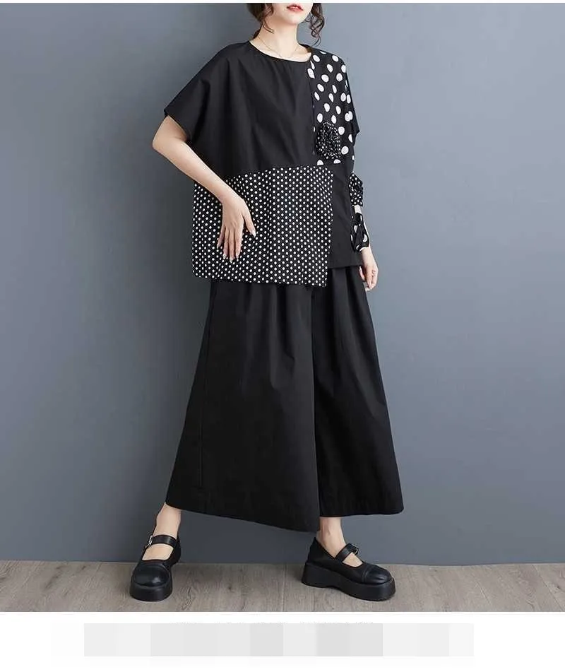 衣都精品- 新款韓版寬鬆大碼暗黑大小波點拼接上衣