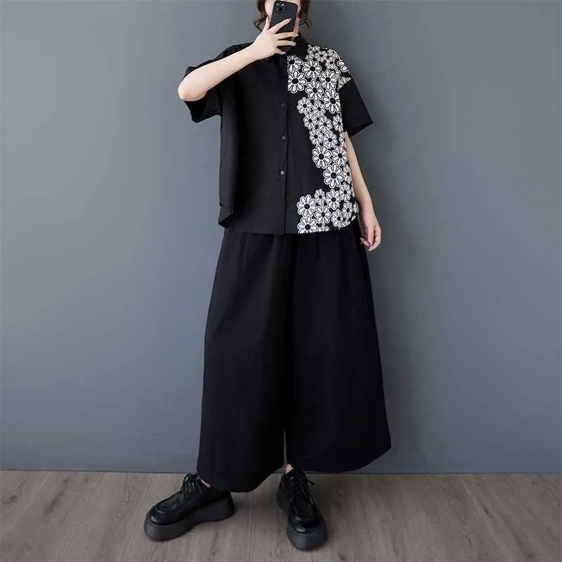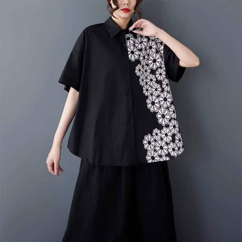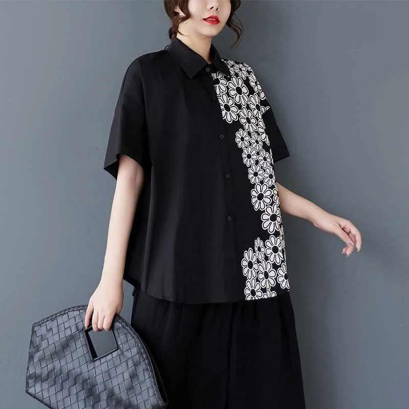 衣都精品- 新款復古大碼短袖印花太陽花上衣