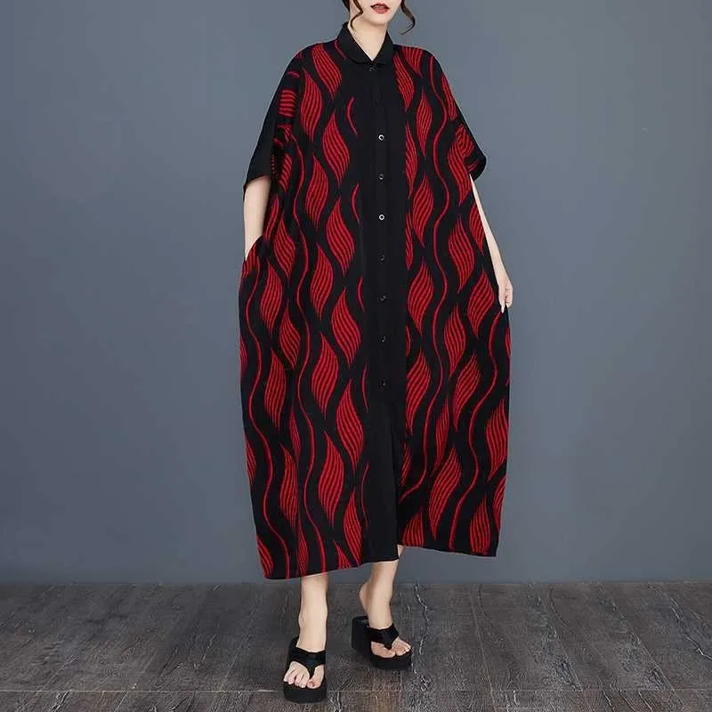衣都精品- 新款韓版寬鬆大碼時尚印花拼色連衣裙