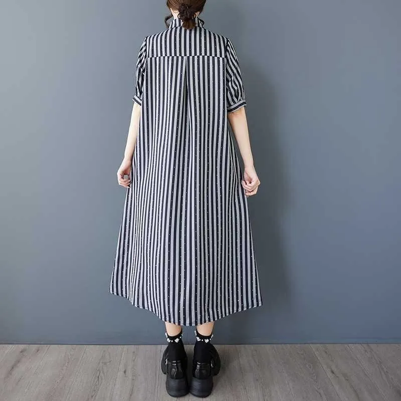 衣都精品- 新款韓版寬鬆大碼燙金印花拼色連衣裙