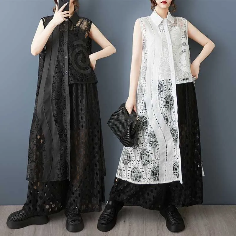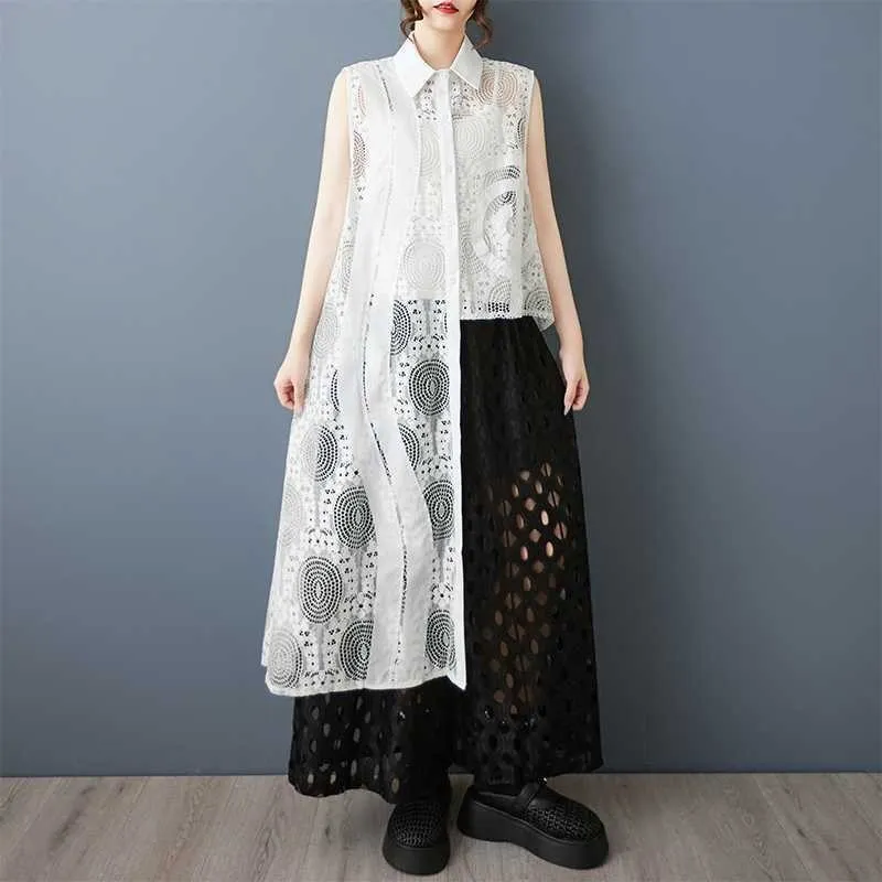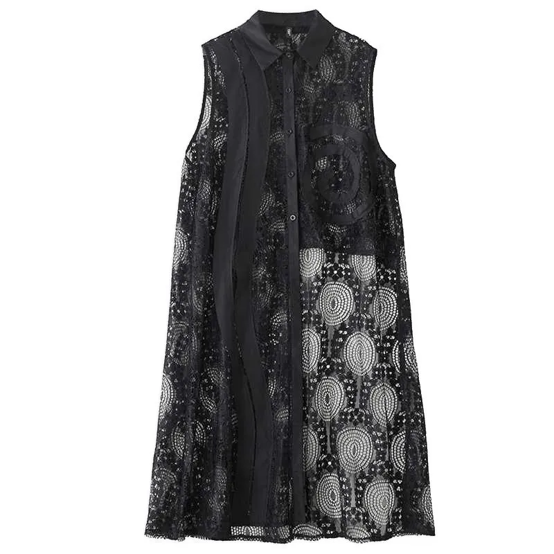 衣都精品- 新款韓版寬鬆大碼網紗拼接無袖連衣裙