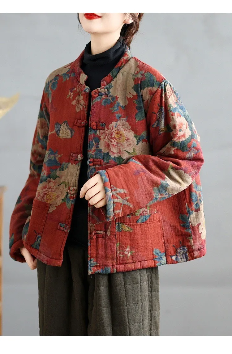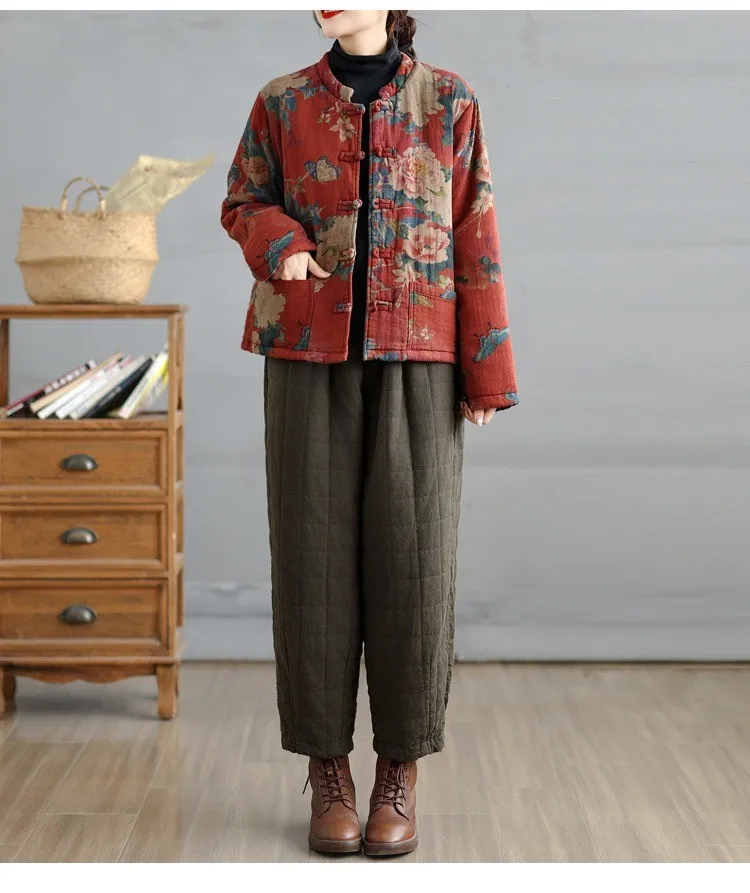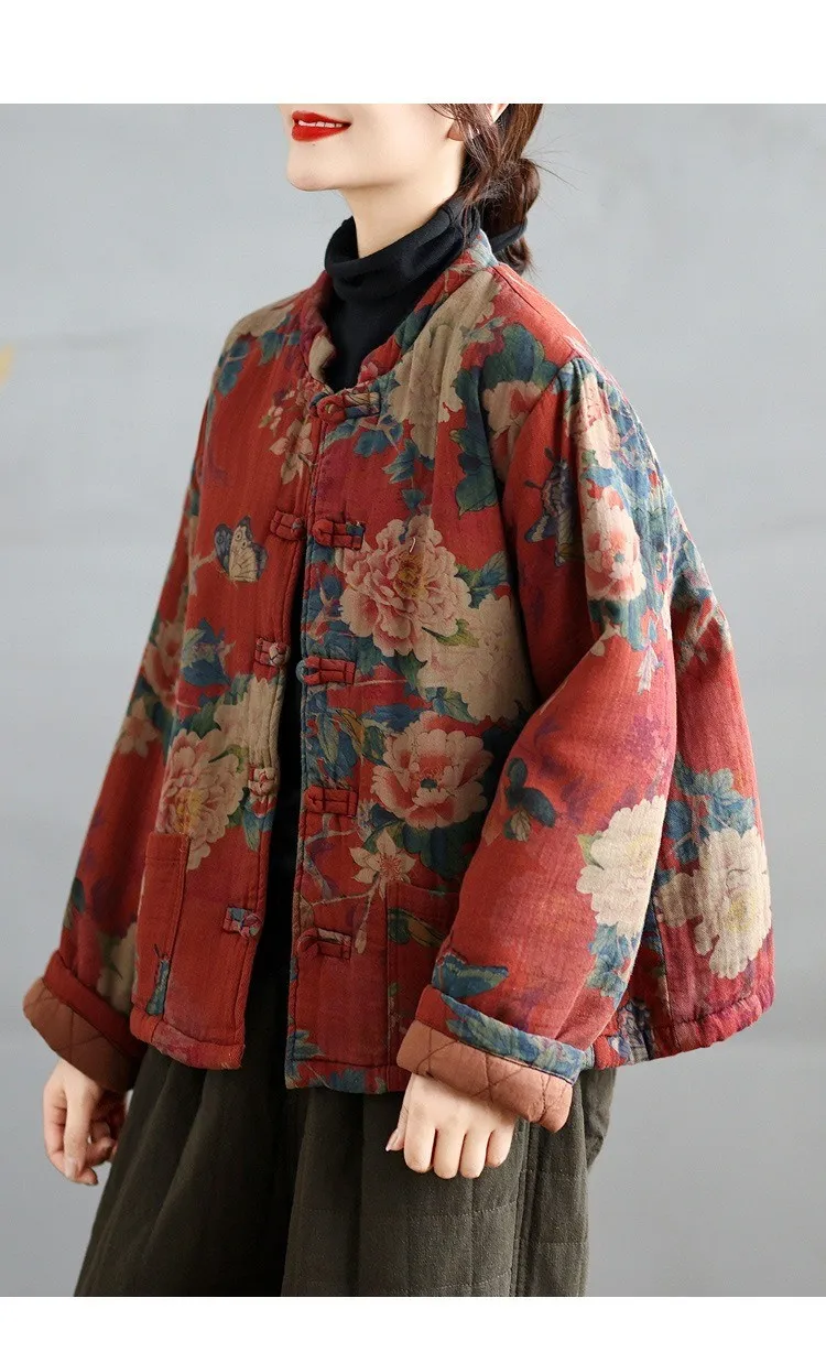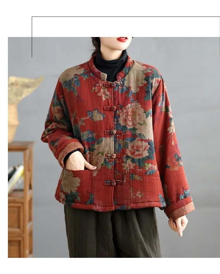 衣都精品- 新款中國風復古棉麻印花加厚外套