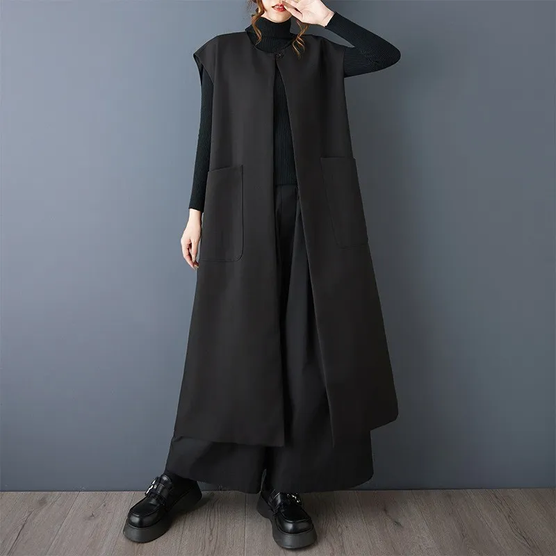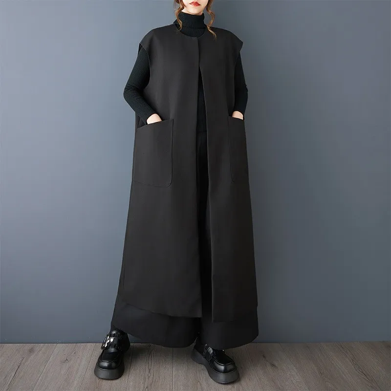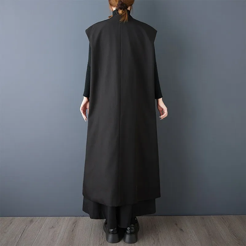 衣都精品- 新款暗黑風簡約雙層長款馬甲外套