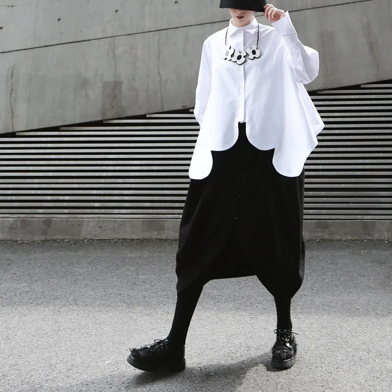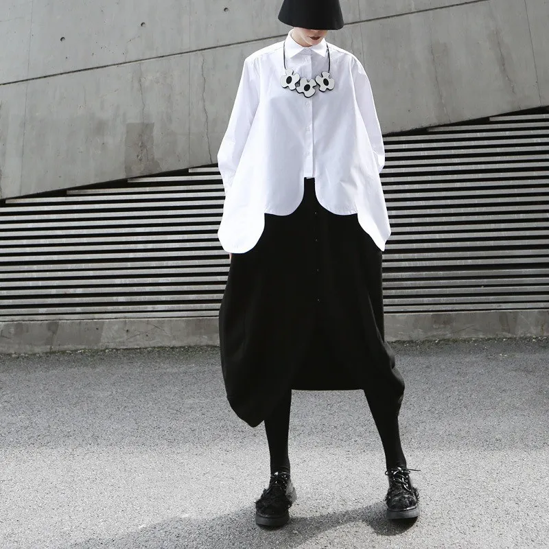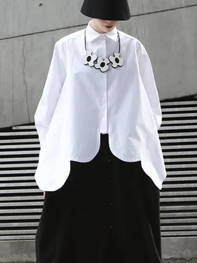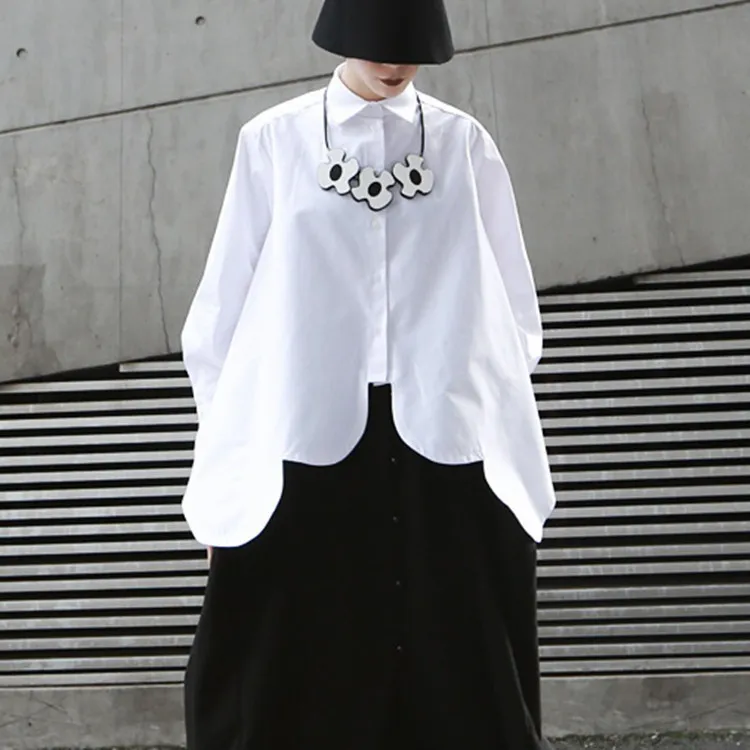 衣都精品- 新款小眾款不規則圓弧超寬下擺上衣