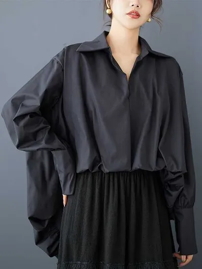 衣都精品- 新款寬鬆時尚山本風設計感前短後長上衣