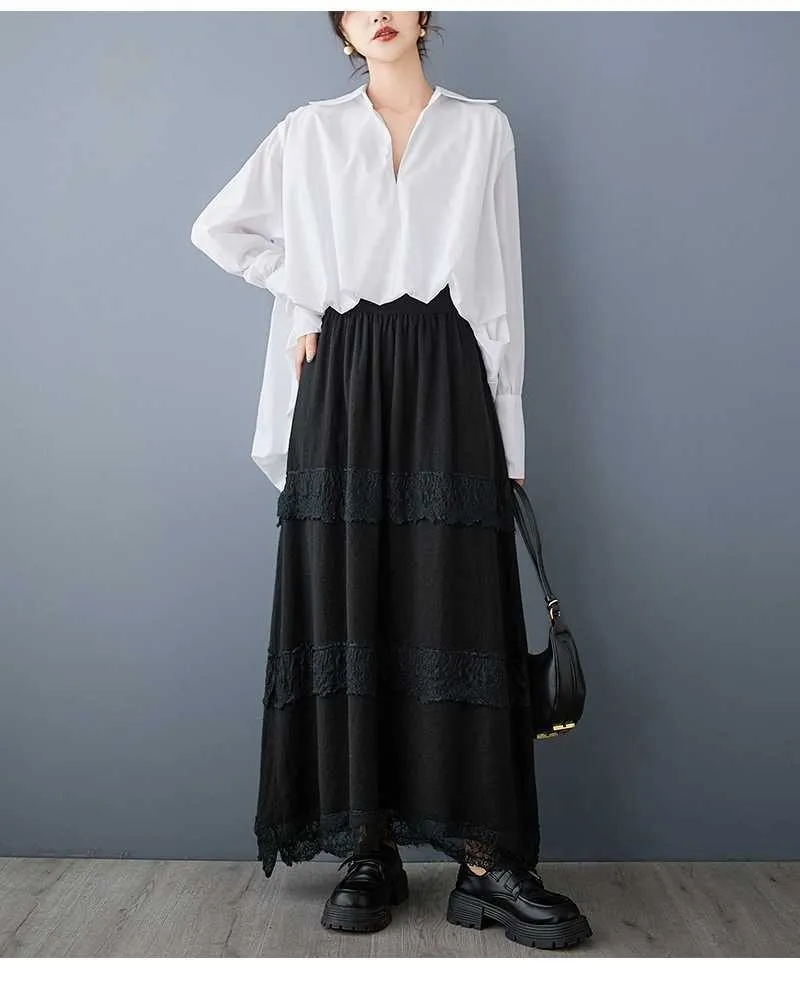 衣都精品- 新款氣質高腰寬鬆花苞半身裙