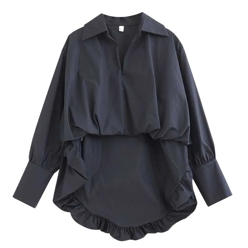 衣都精品- 新款小眾款不規則圓弧超寬下擺上衣