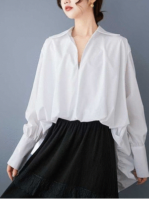 衣都精品- 新款小眾款不規則圓弧超寬下擺上衣