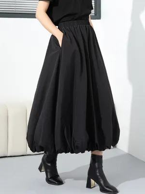 衣都精品- 新款氣質高腰寬鬆花苞半身裙