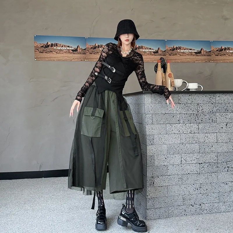 衣都精品- 新款網紗拼接大口袋寬鬆個性休閒褲