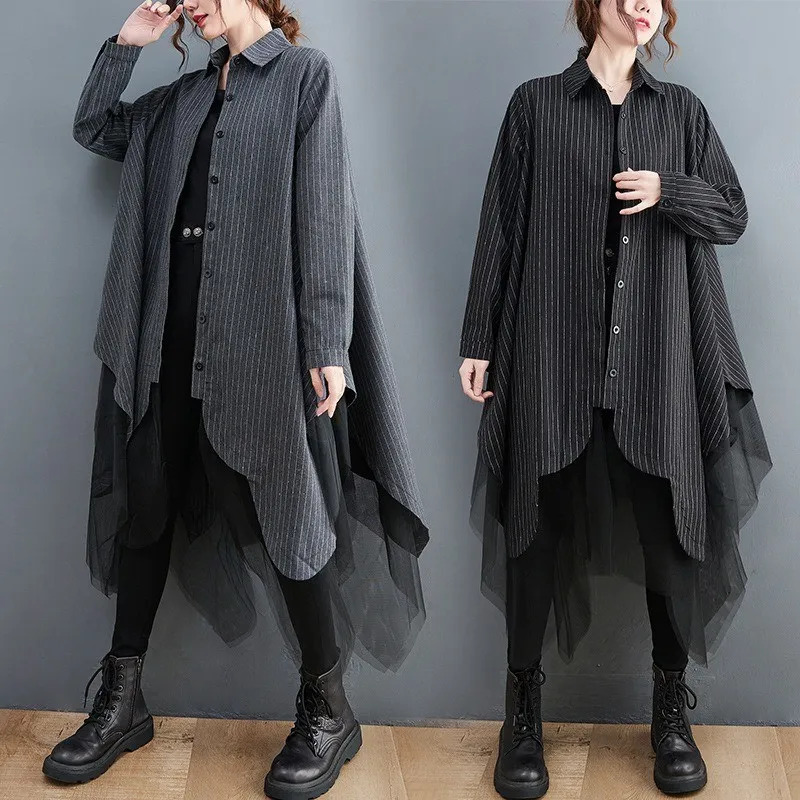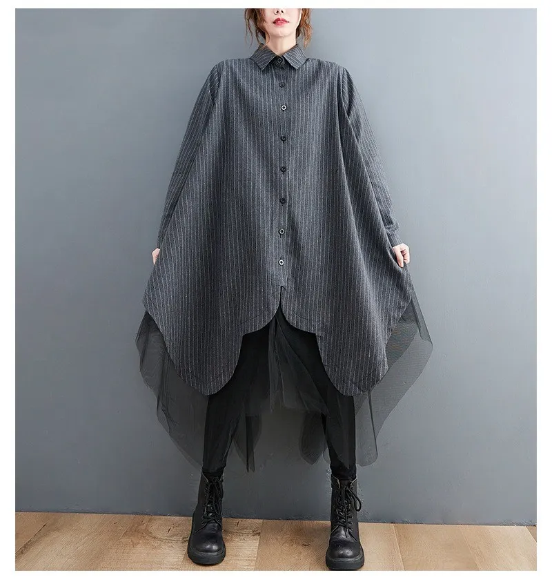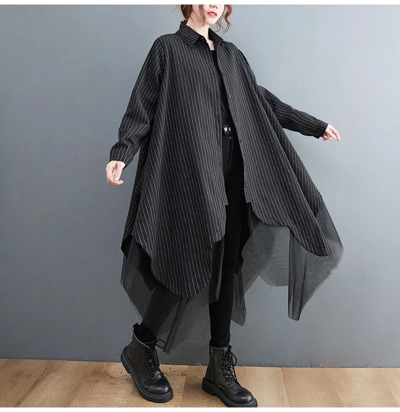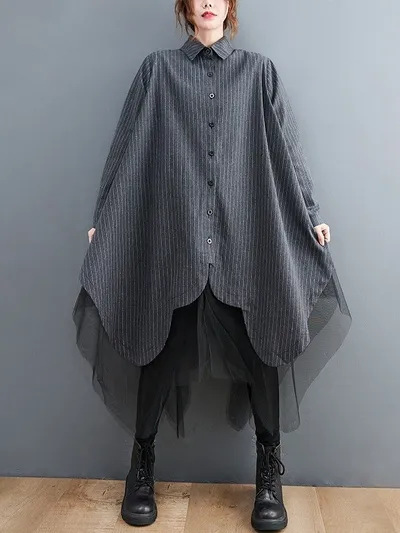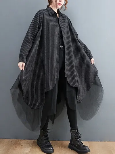 衣都精品- 新款寬鬆時尚條紋拼接三層網紗外套
