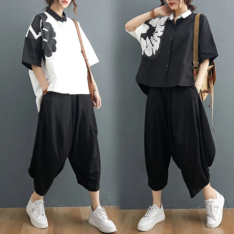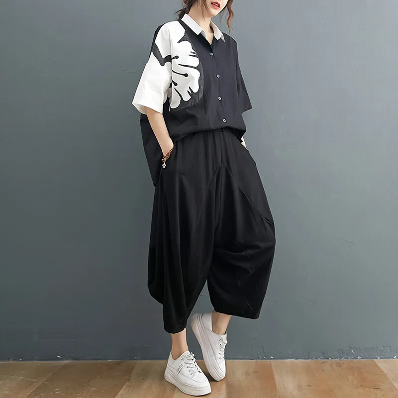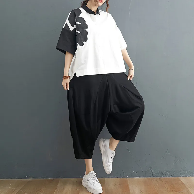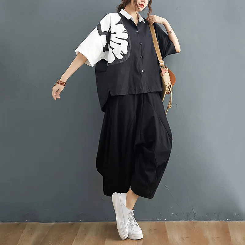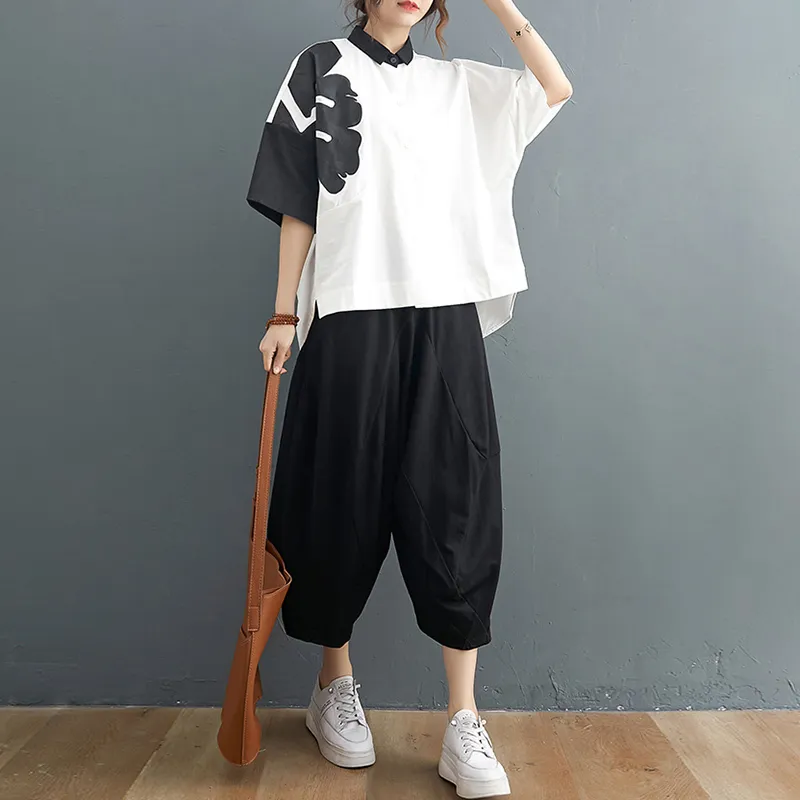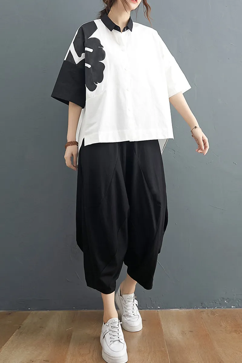 衣都精品- 2021夏季新款塗鴉短袖排扣時尚上衣