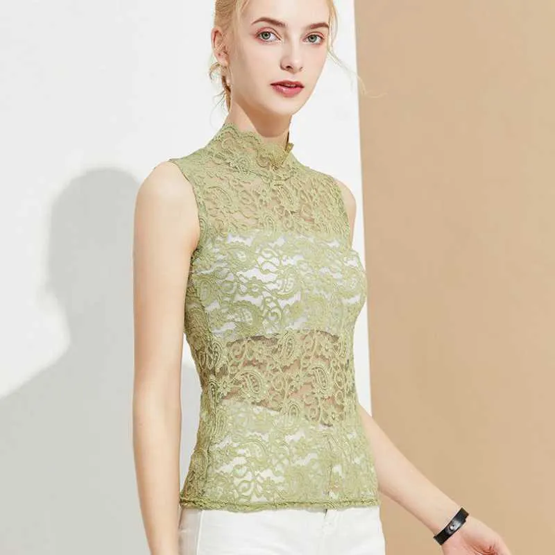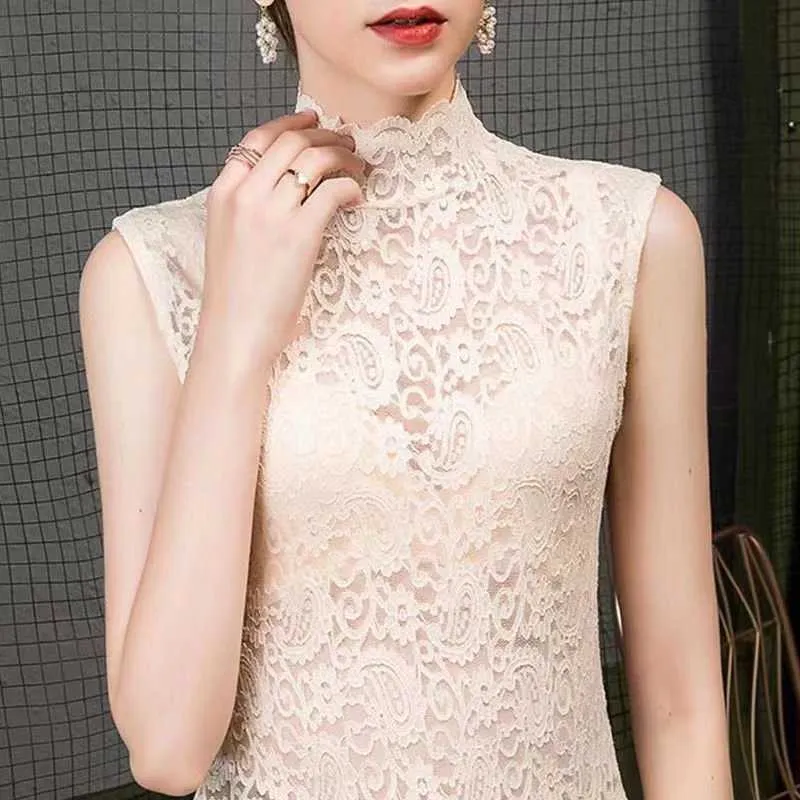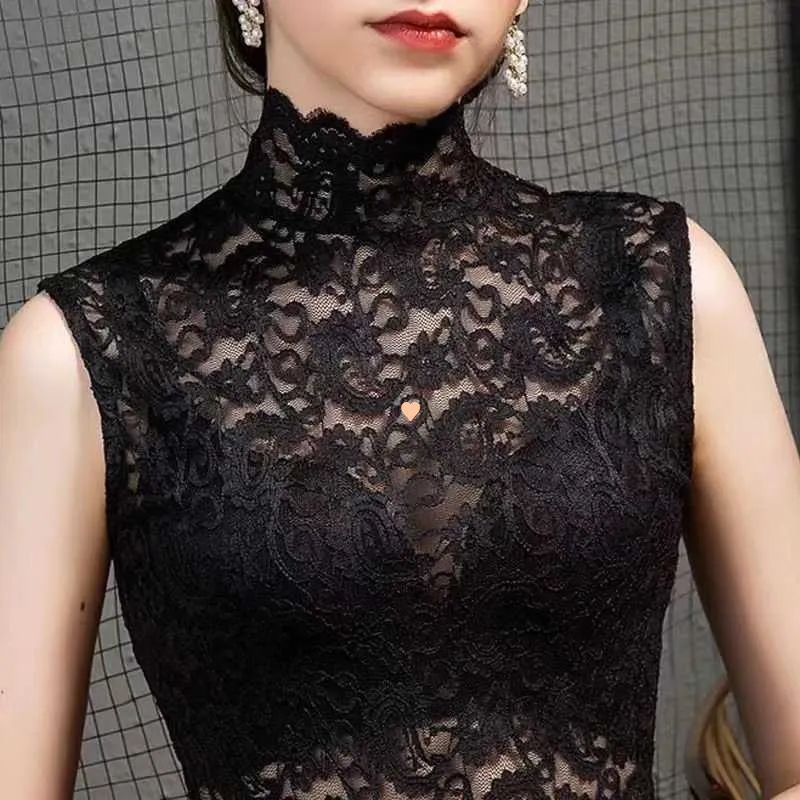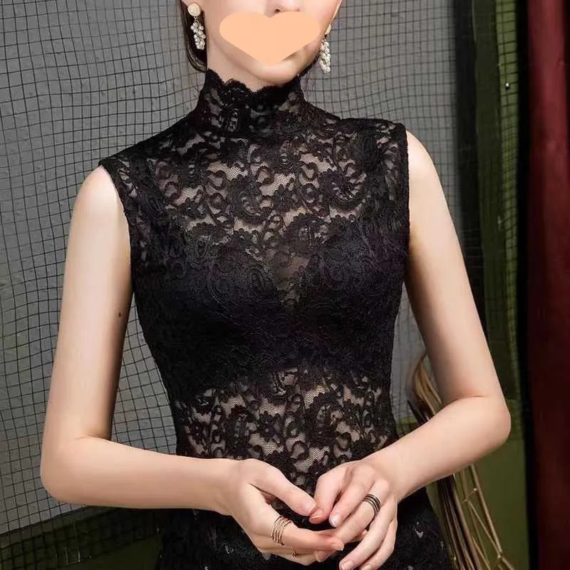 衣都精品- 2022冬季新款高端修身無袖百搭高領蕾絲領子