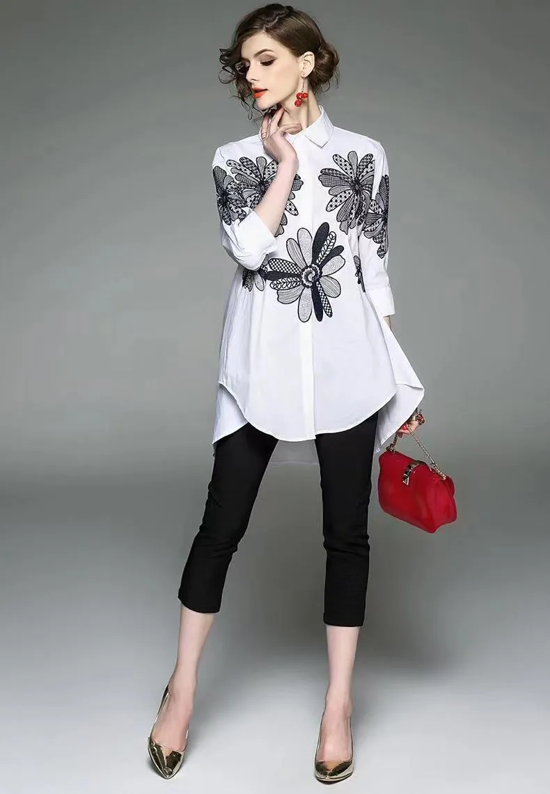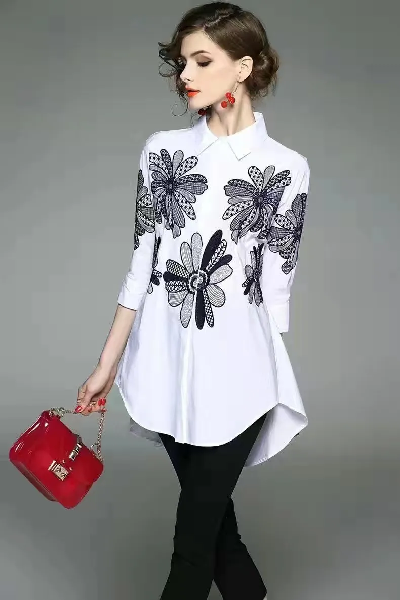 衣都精品- 2023新款歐洲春季繡花長款刺繡上衣