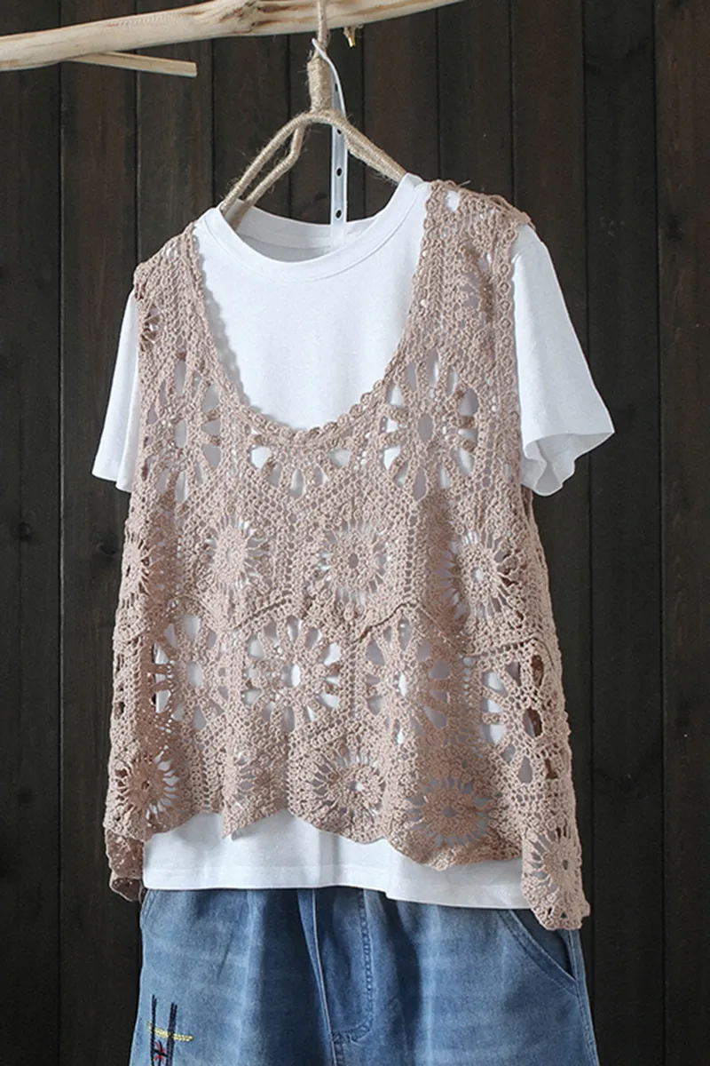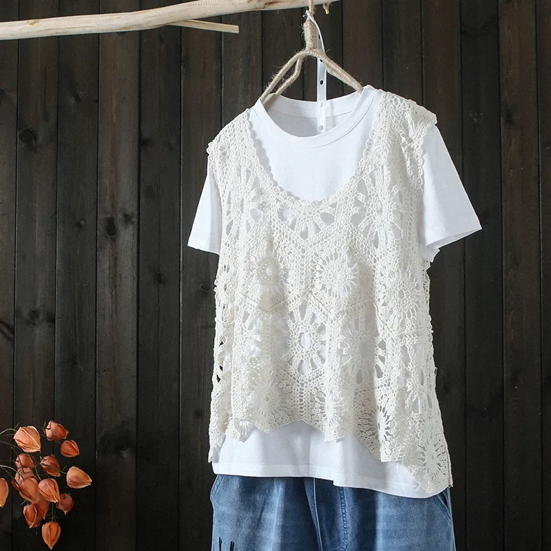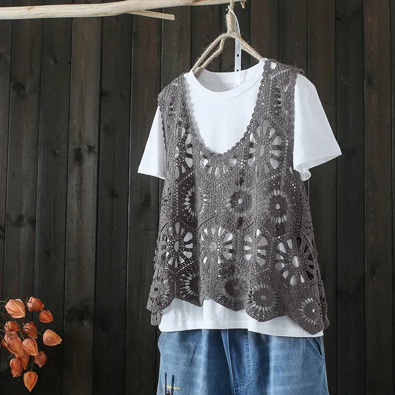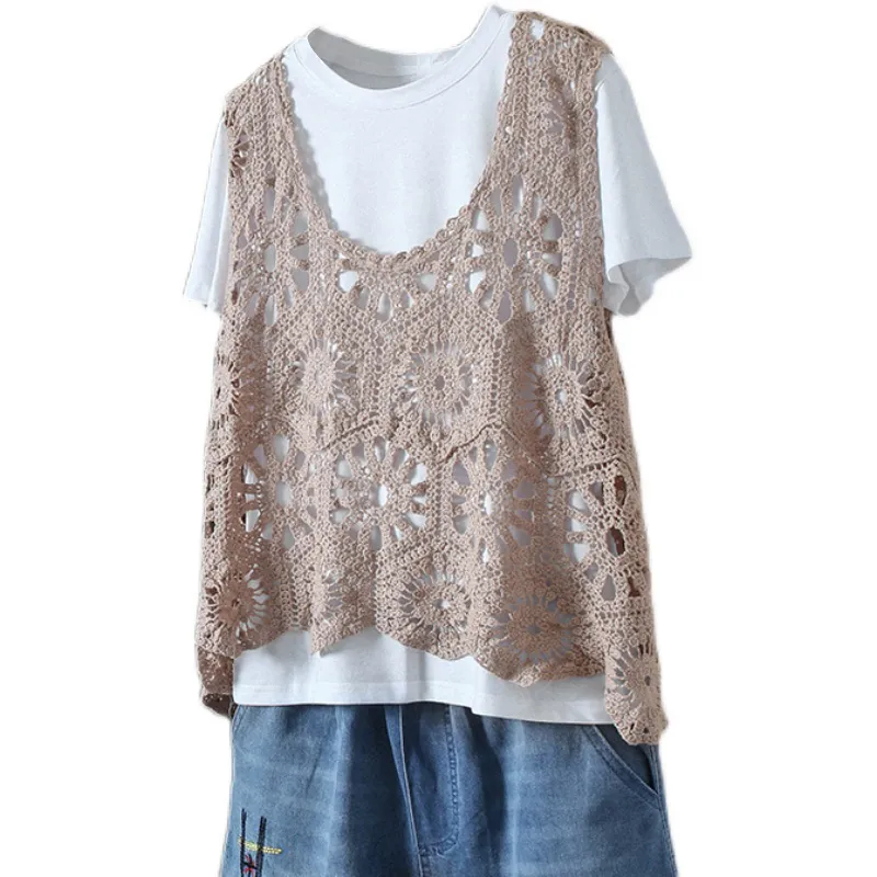 衣都精品- 2023新款復古勾花鏤空U型領無袖上衣