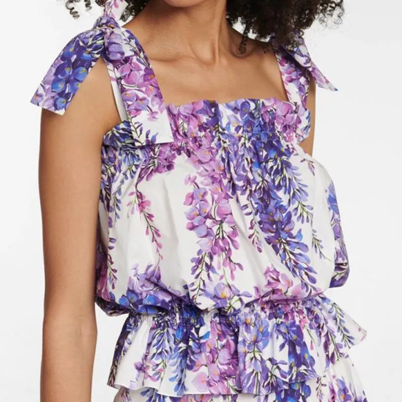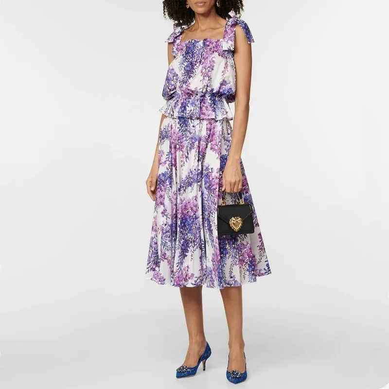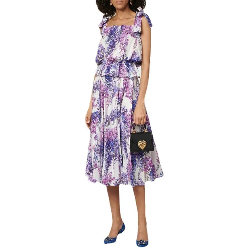 衣都精品- 2023新款歐美時尚印花彈力一字肩吊帶套裝