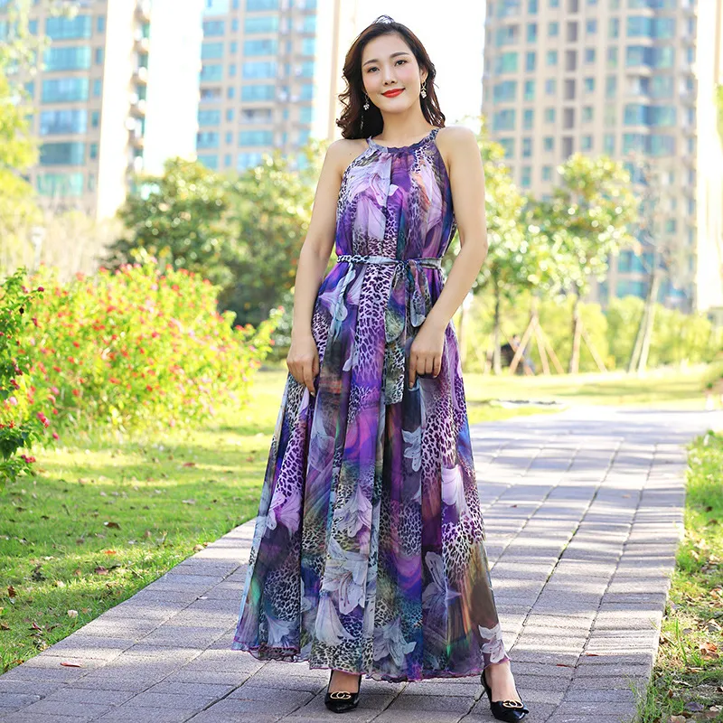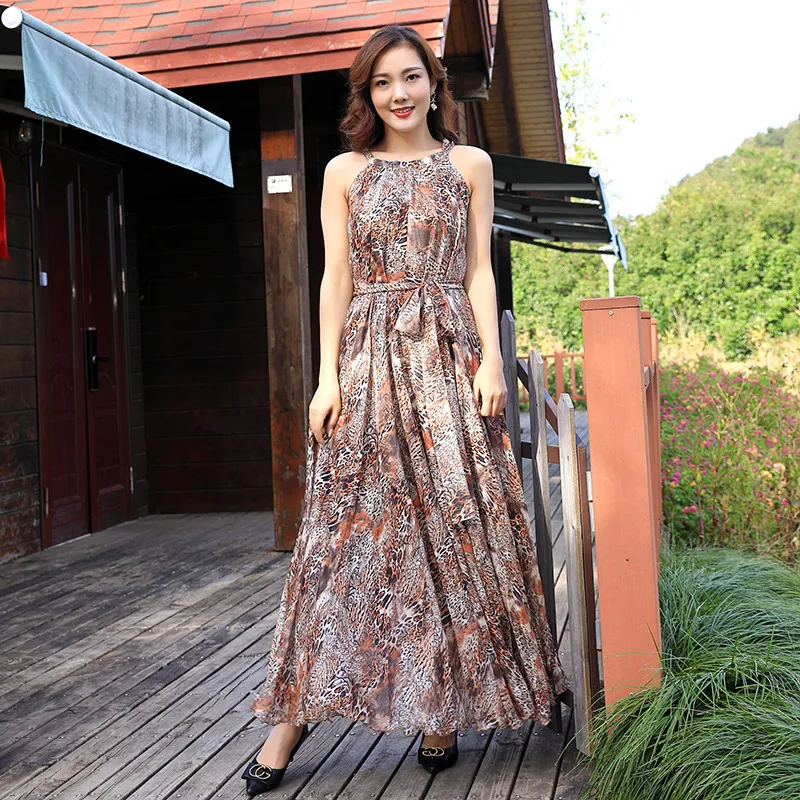 衣都精品- 2023新款歐美大碼豹紋吊帶長款連衣裙