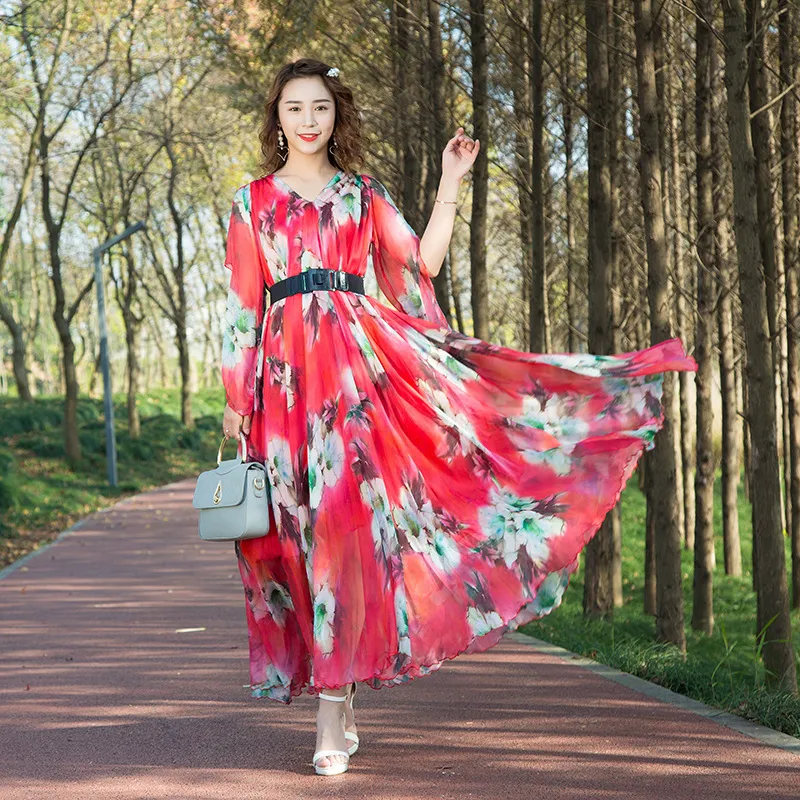 衣都精品- 2023新款波西米亞海邊度假大擺連衣裙