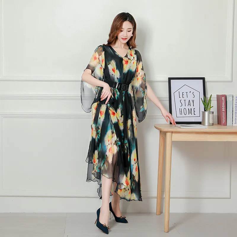 衣都精品- 2023新款波西米亞V領印花短袖連衣裙