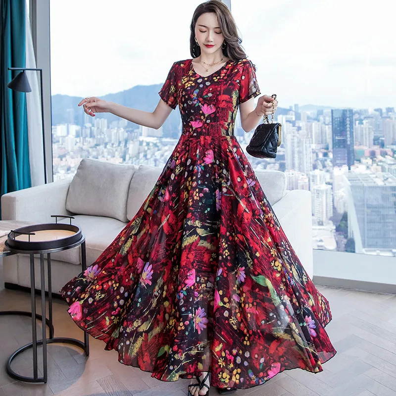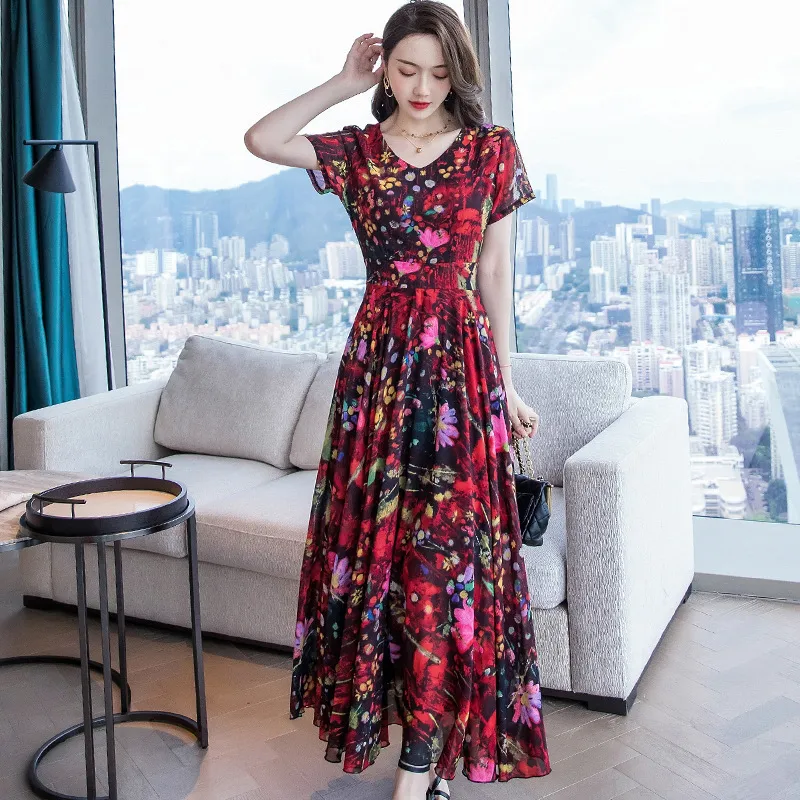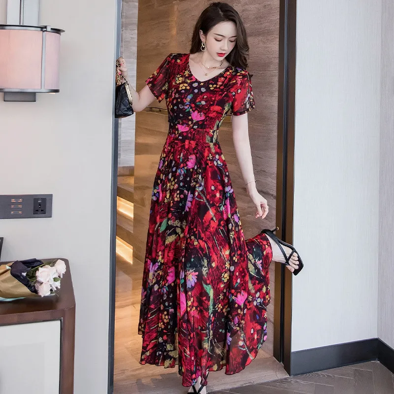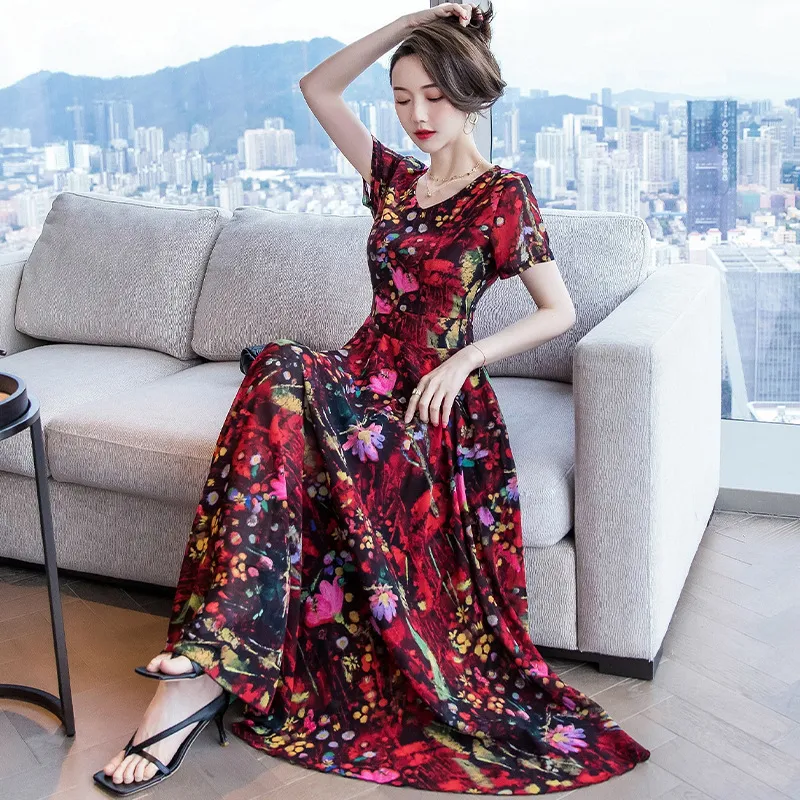 衣都精品- 2023新款韓版顯瘦雪紡度假短袖連衣裙