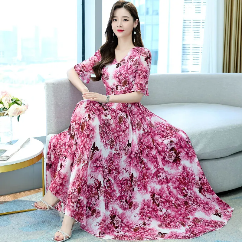 衣都精品- 2023新款長款大擺修身顯瘦收腰連衣裙