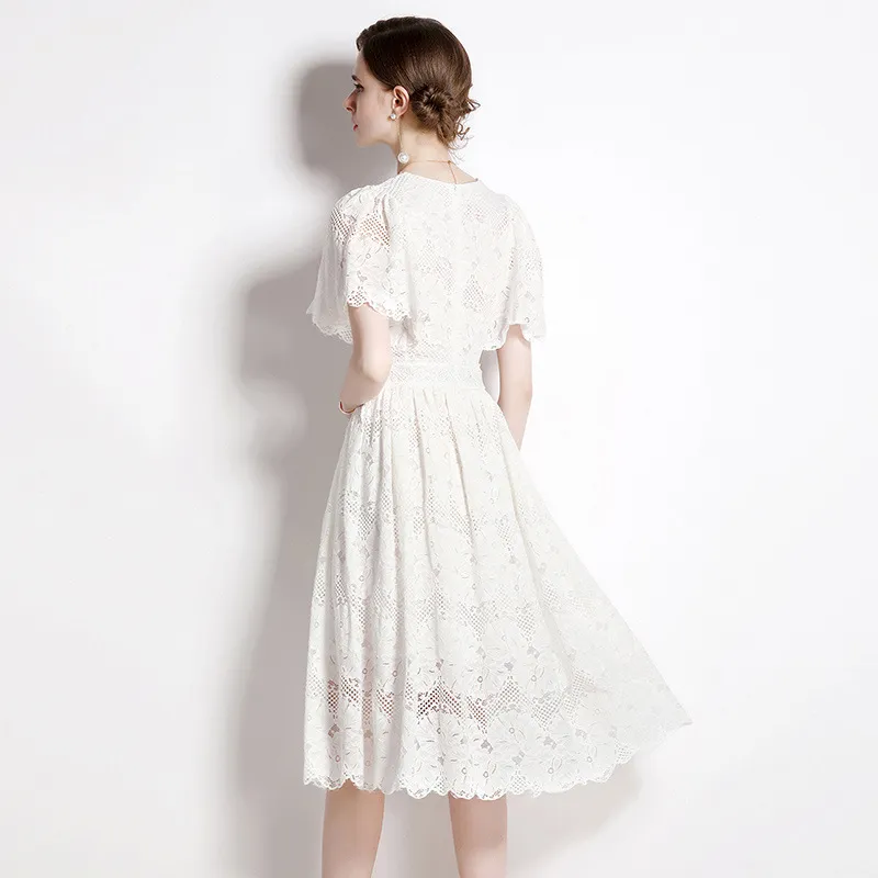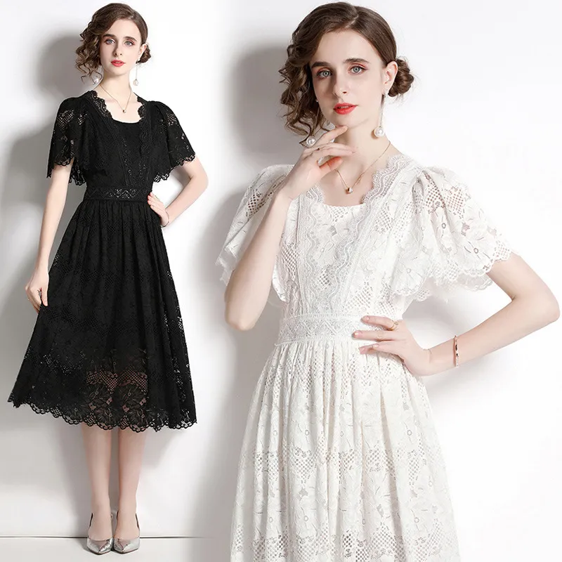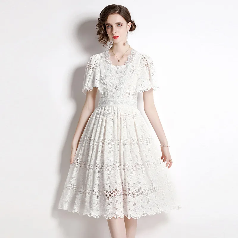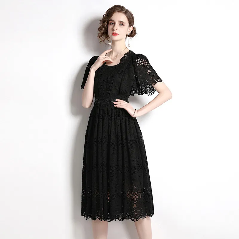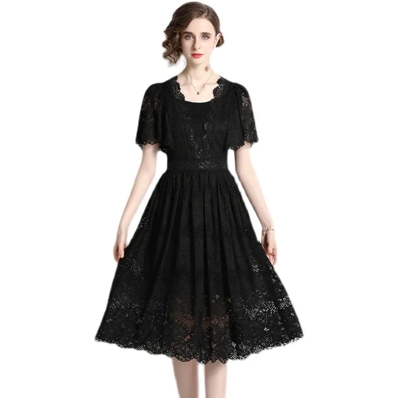 衣都精品- 2023新款夏季鏤空蕾絲顯瘦立領連衣裙