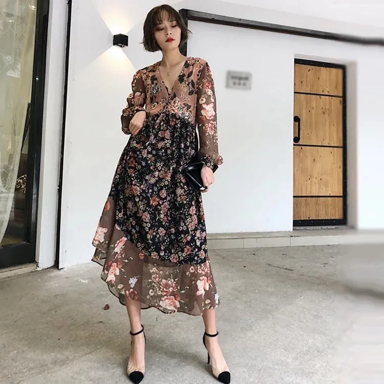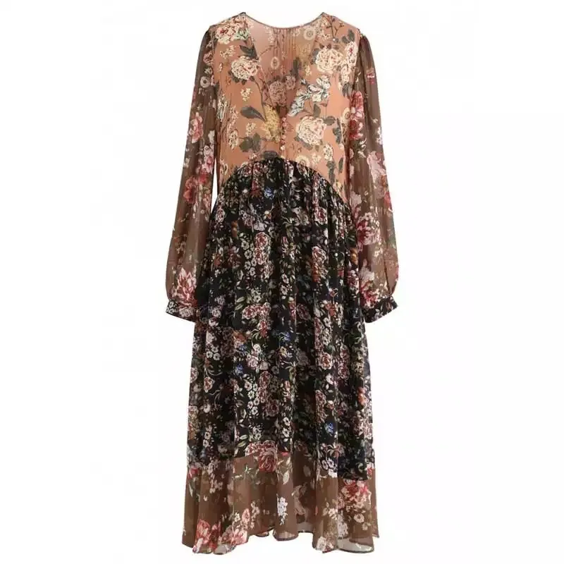衣都精品- 2023新款歐美印花絲滑雪紡高端連衣裙