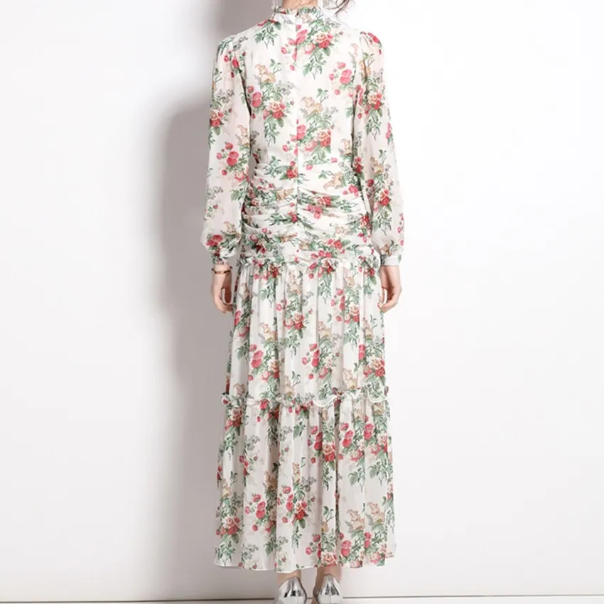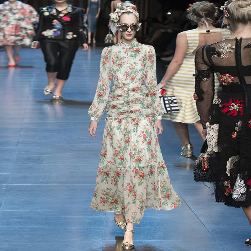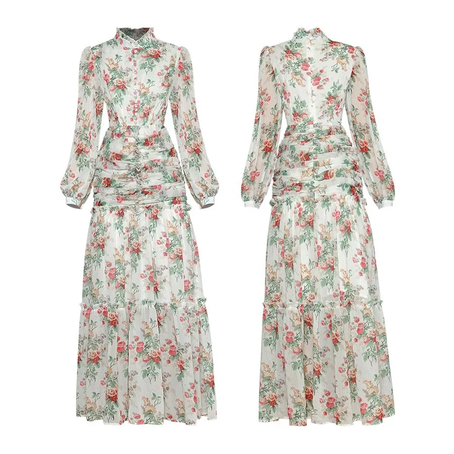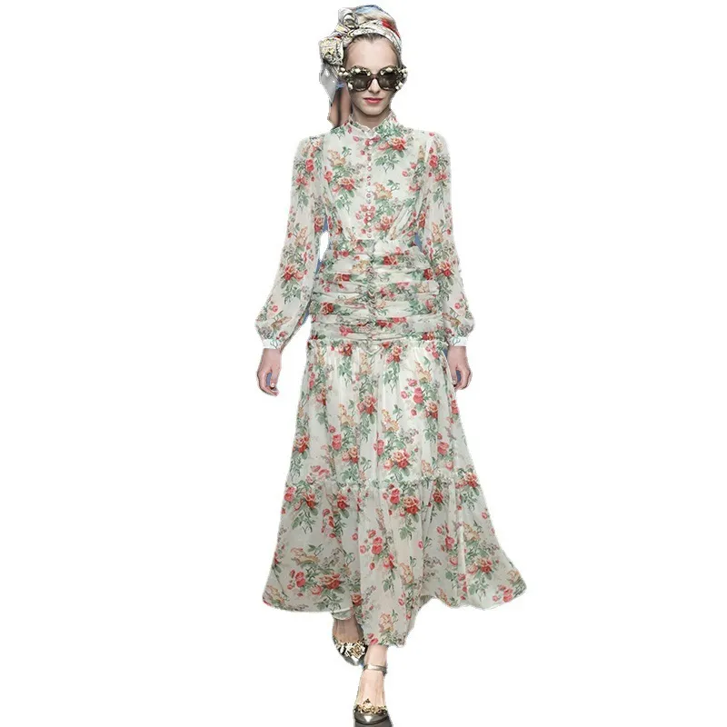 衣都精品- 2023新款歐美時尚印花網紗修身顯瘦連衣裙