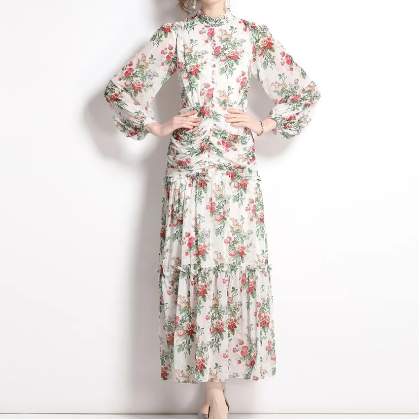 衣都精品- 2023新款名媛氣質立領褶皺收腰連衣裙