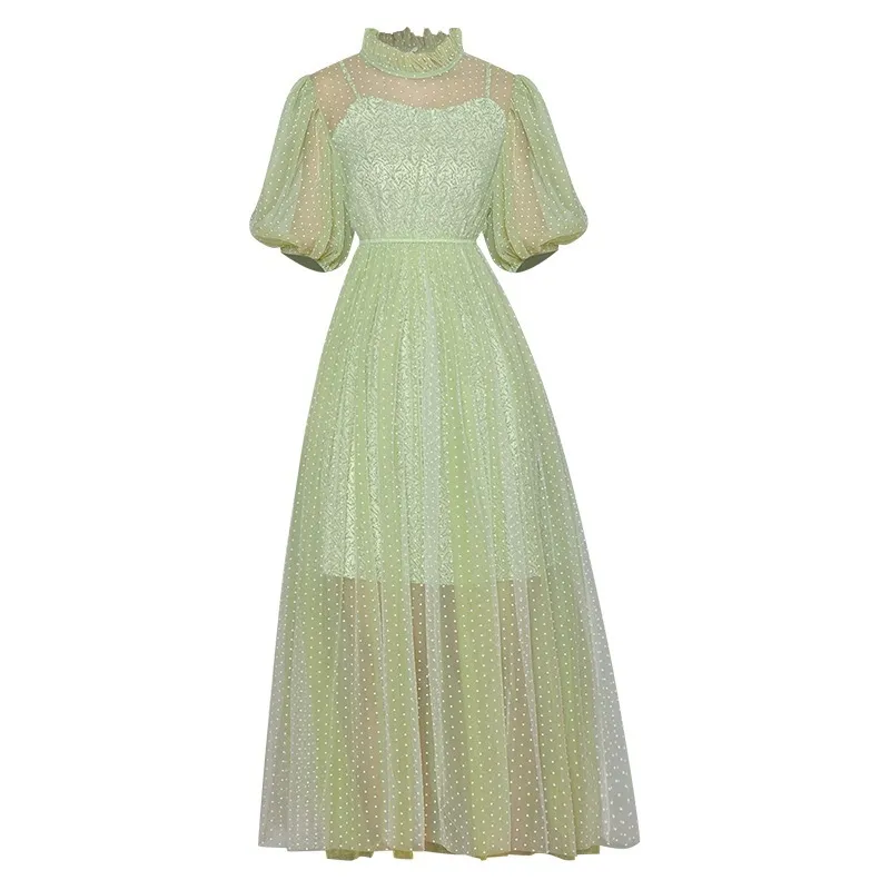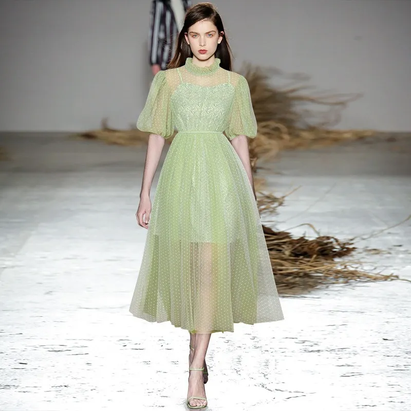 衣都精品- 2023新款歐美時尚印花網紗修身顯瘦連衣裙