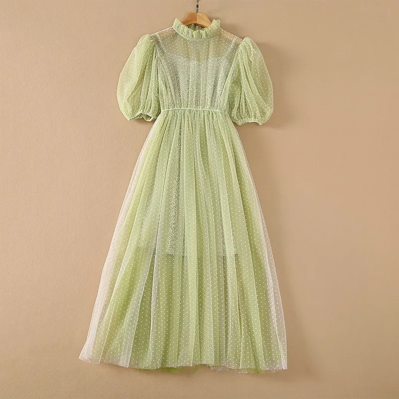 衣都精品- 2023新款法式甜美泡泡紗短袖連衣裙