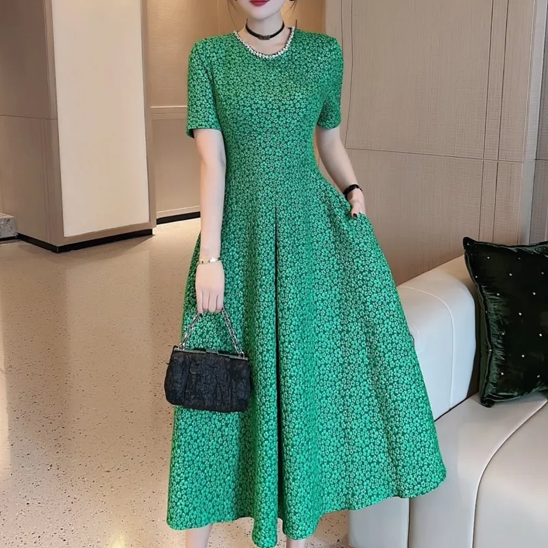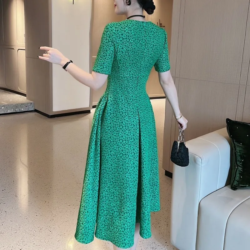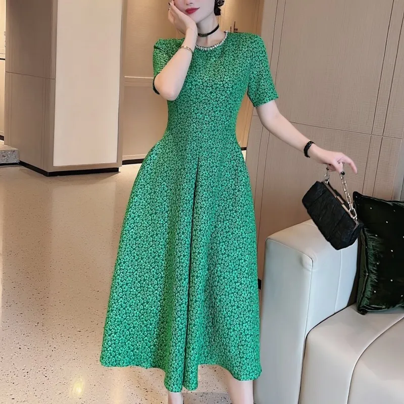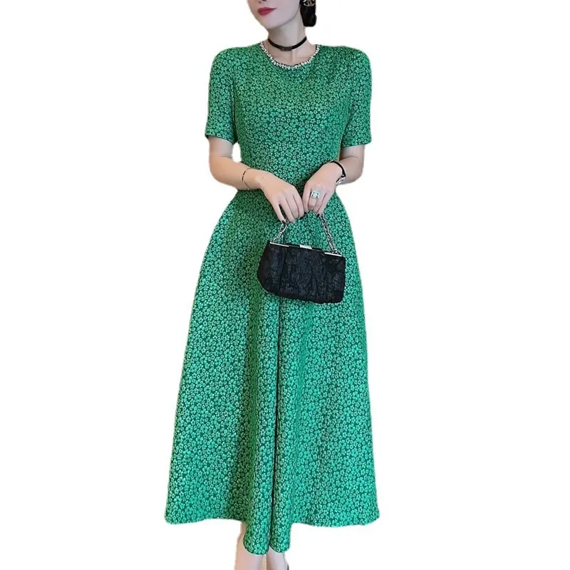 衣都精品- 2023新款法式溫柔鑲鑽浮雕提花連衣裙
