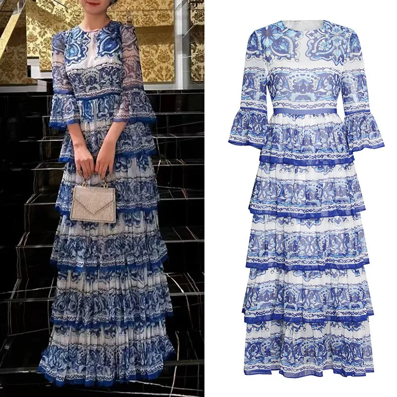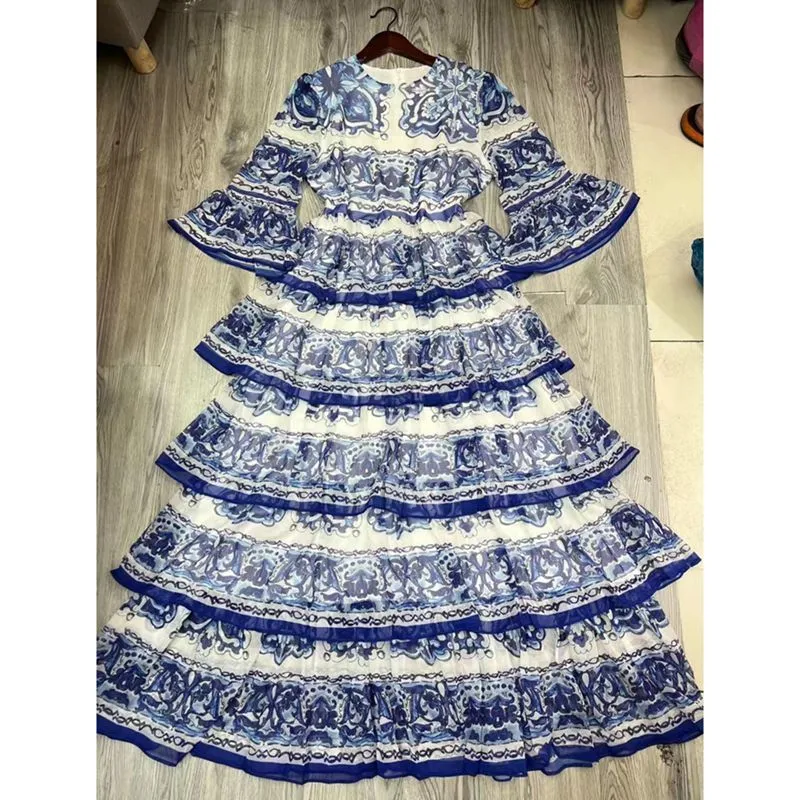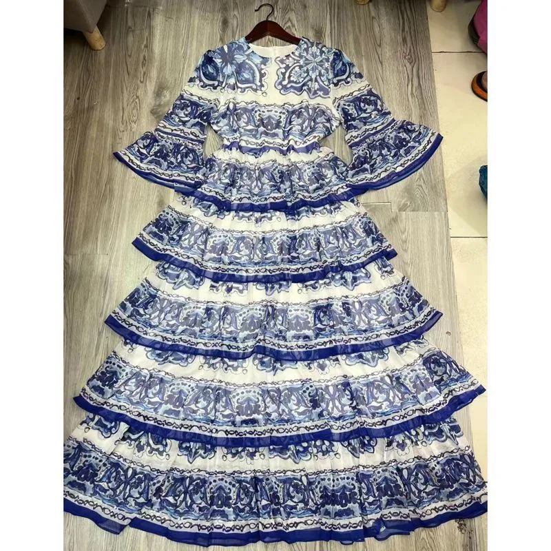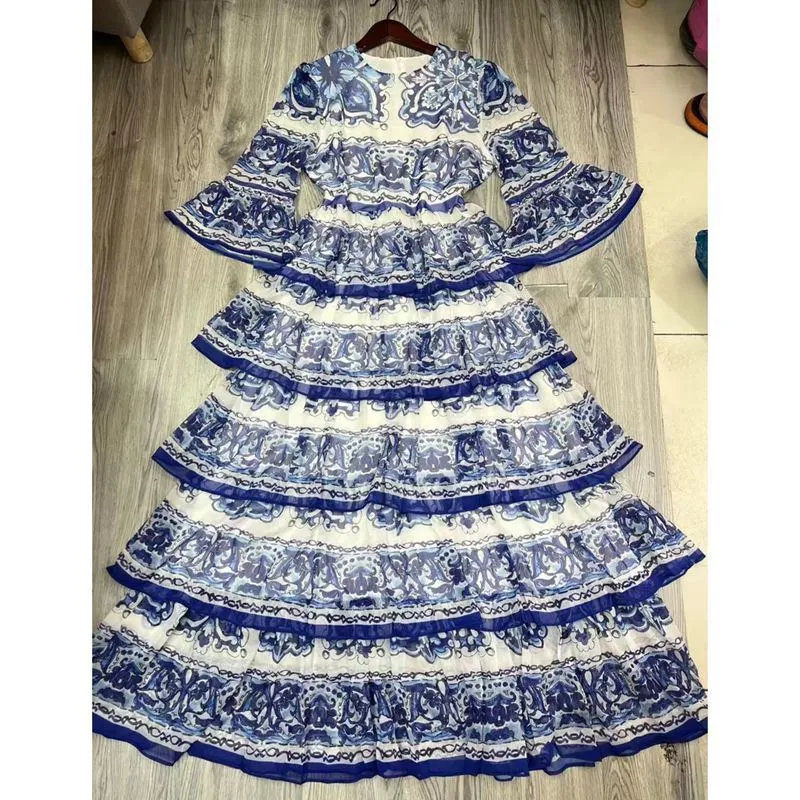 衣都精品- 2023新款青花瓷水墨印花蛋糕款連衣裙