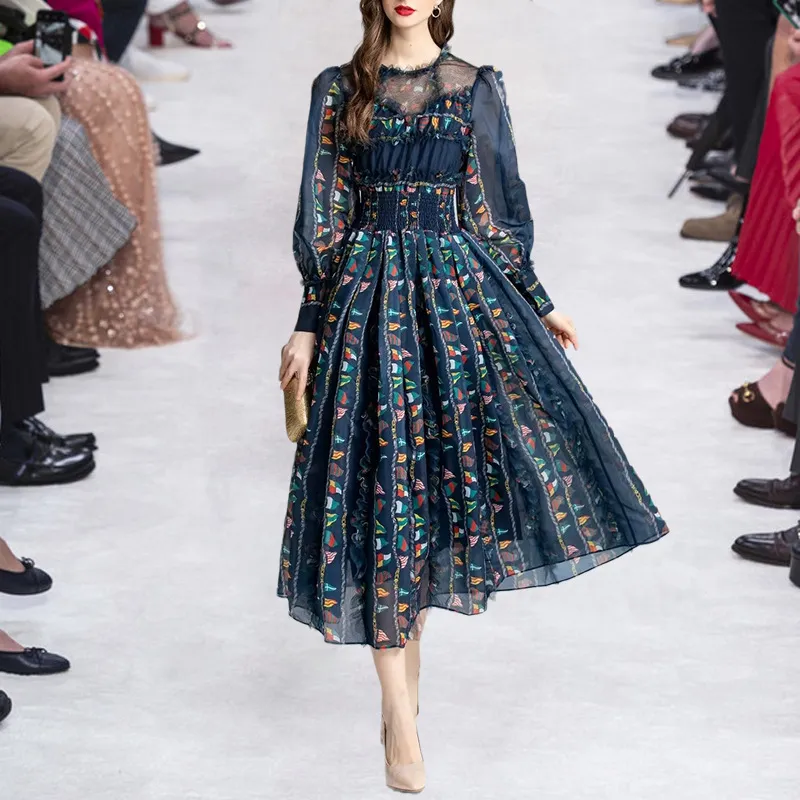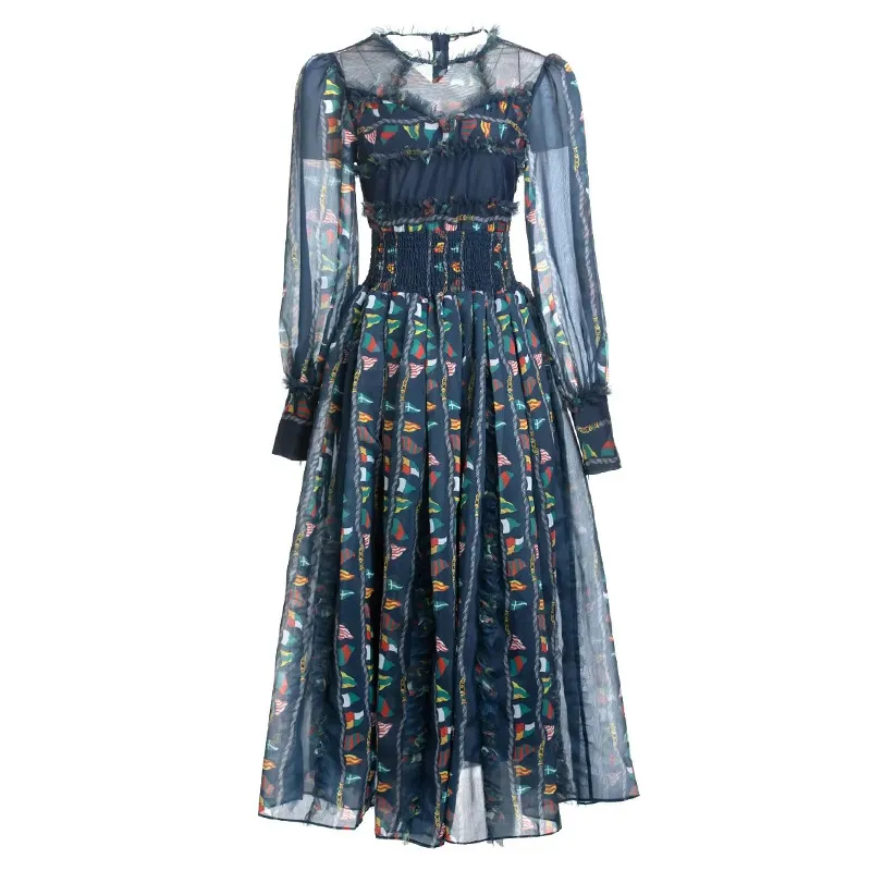 衣都精品- 2023新款青花瓷水墨印花蛋糕款連衣裙