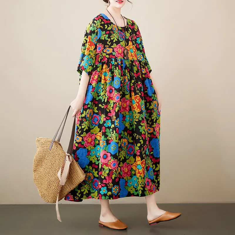 衣都精品- 2023新款波西米亞寬鬆短袖大擺型連衣裙