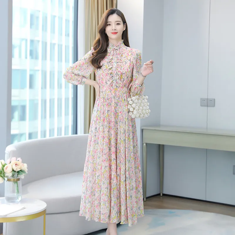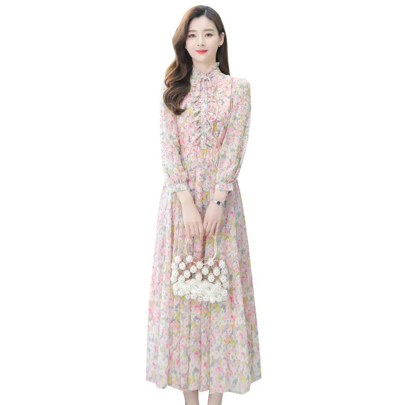 衣都精品- 2023新款田園風文藝復古印花打褶連衣裙