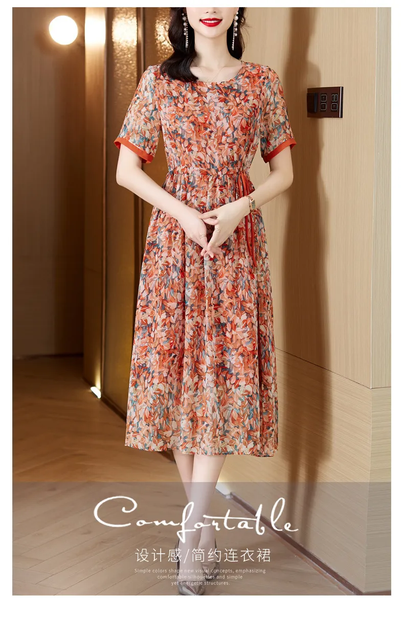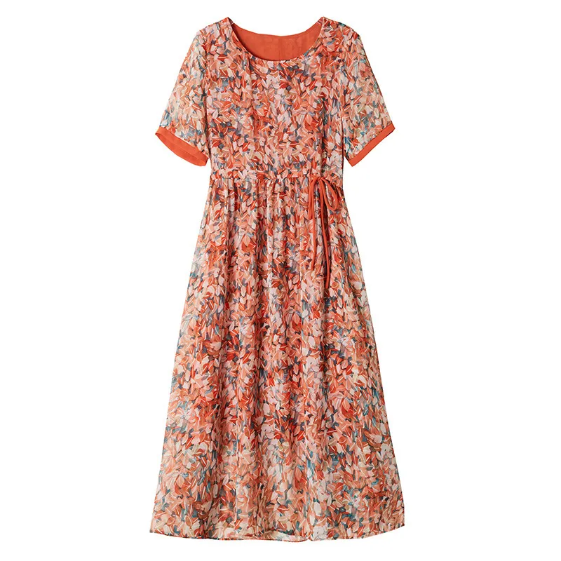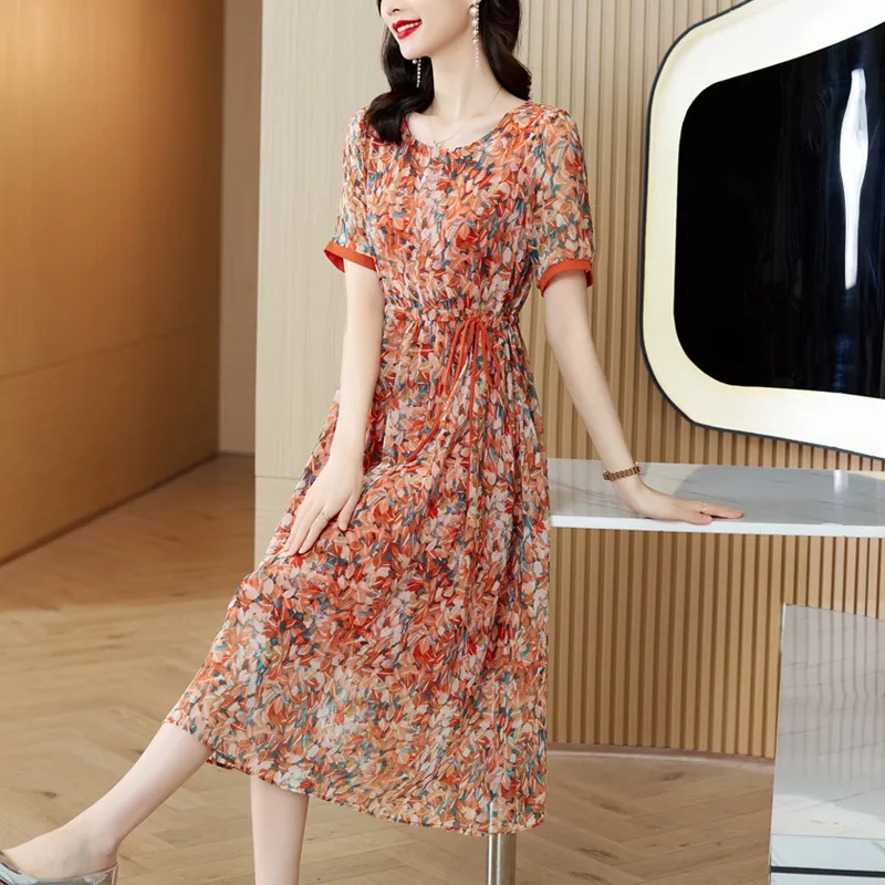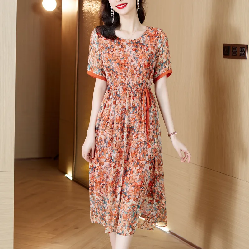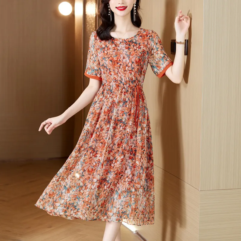 衣都精品- 2023新款優雅顯瘦雪紡碎花短袖連衣裙