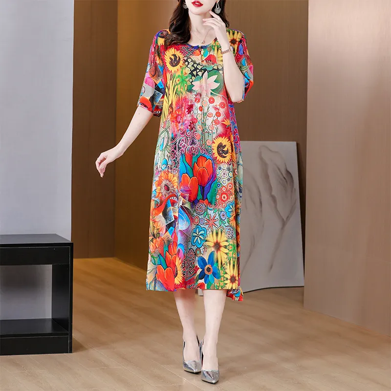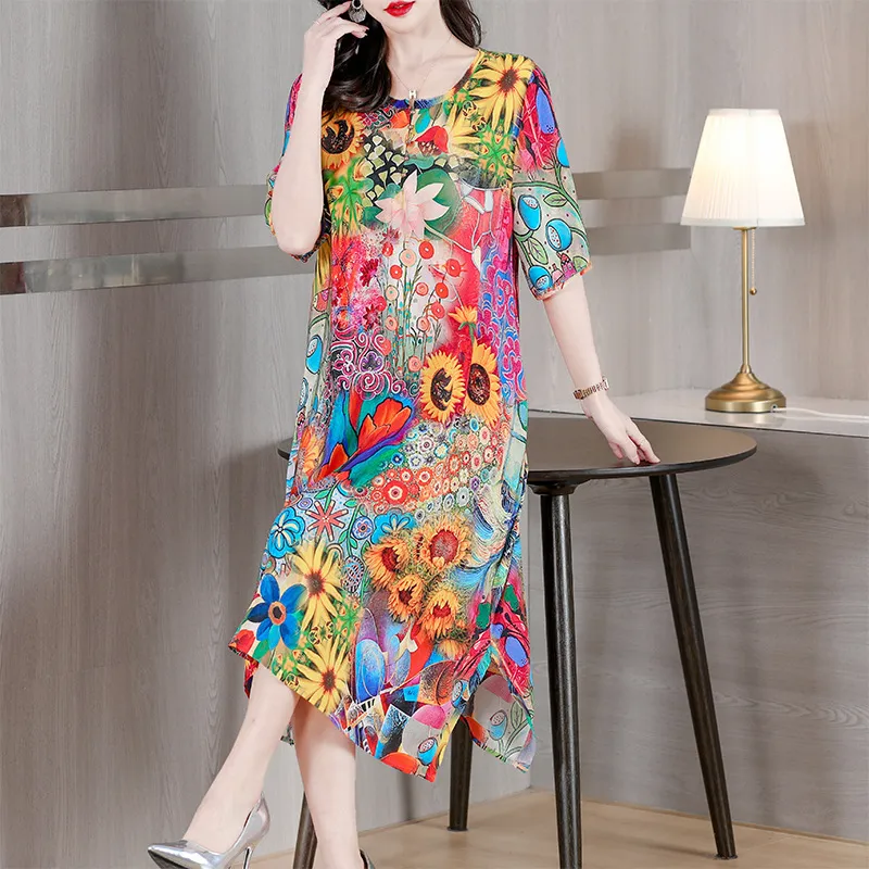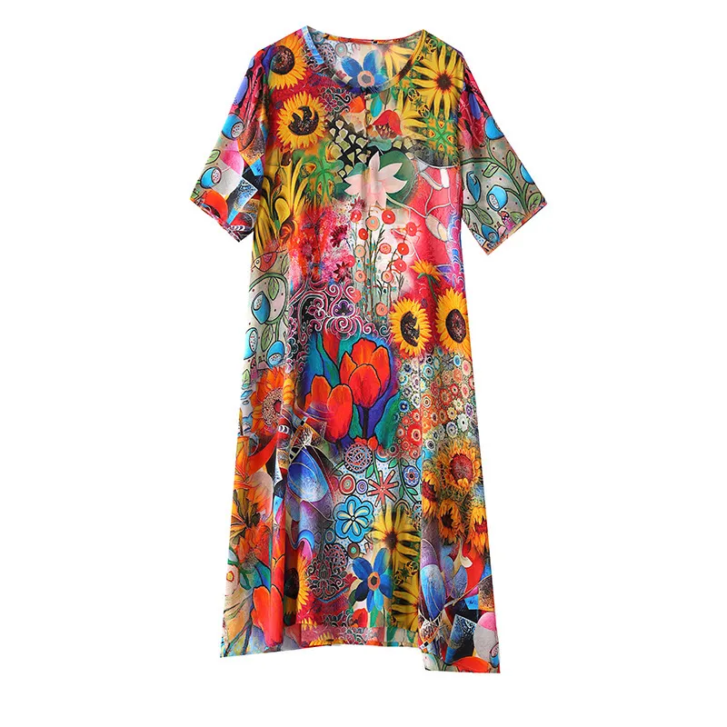衣都精品- 2023新款優雅顯瘦雪紡碎花短袖連衣裙