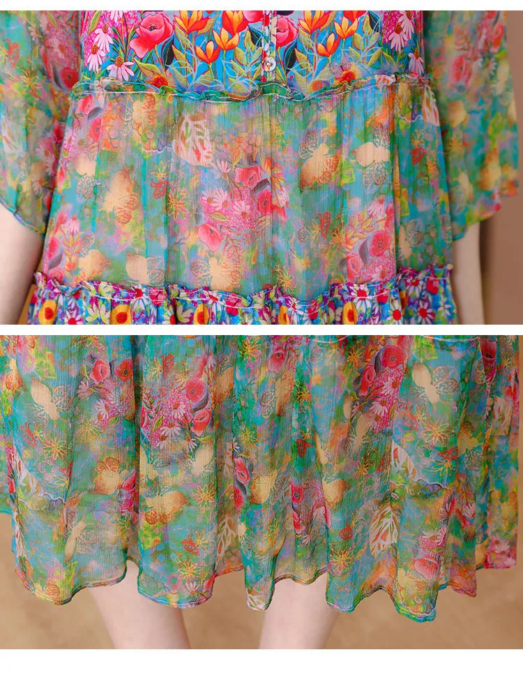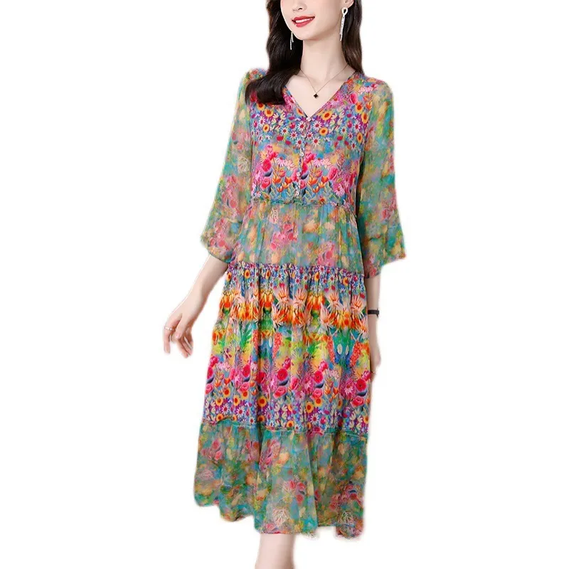 衣都精品- 2023新款法式浪漫印花V領碎花連衣裙