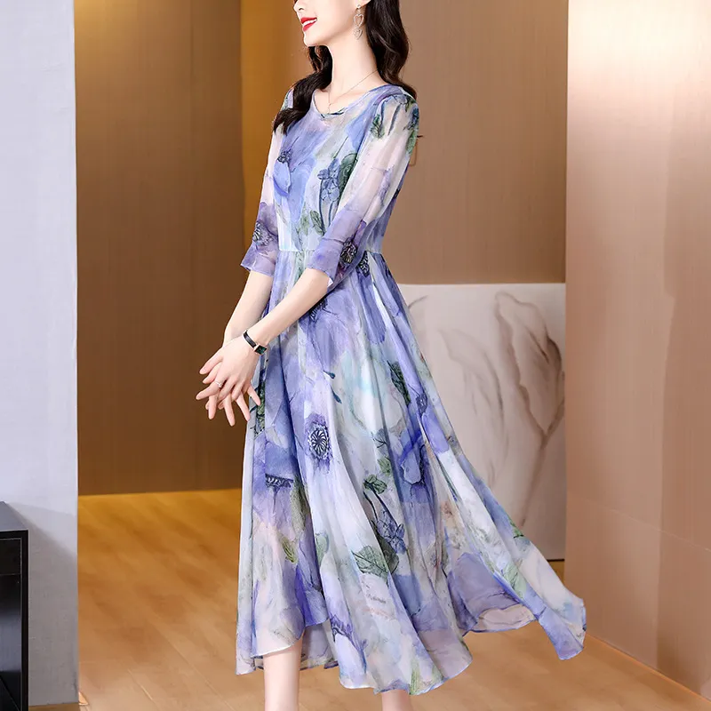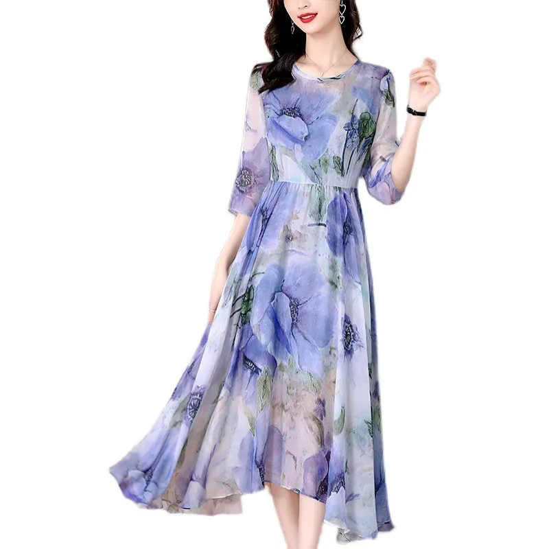 衣都精品- 2023新款遮肉顯瘦長款碎花連衣裙