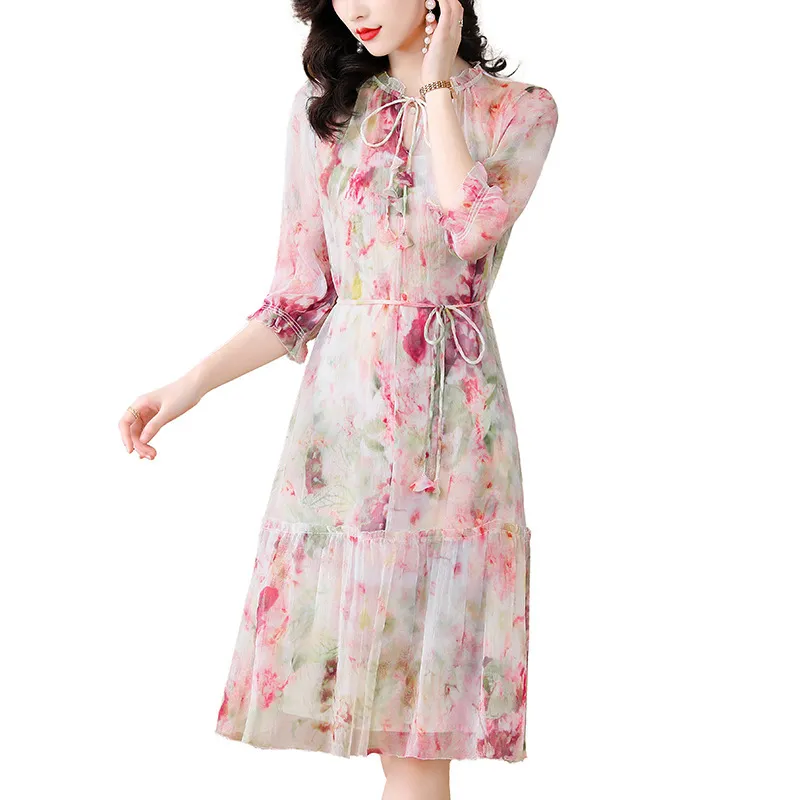 衣都精品- 2023新款遮肉顯瘦長款碎花連衣裙