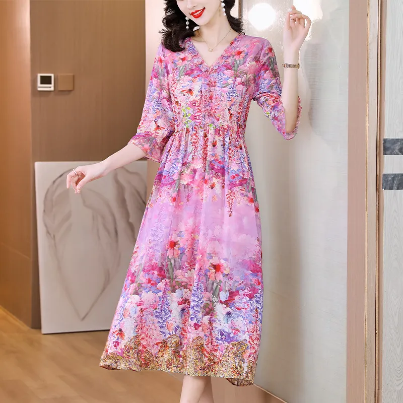 衣都精品- 2023新款時尚優雅復古印花連衣裙