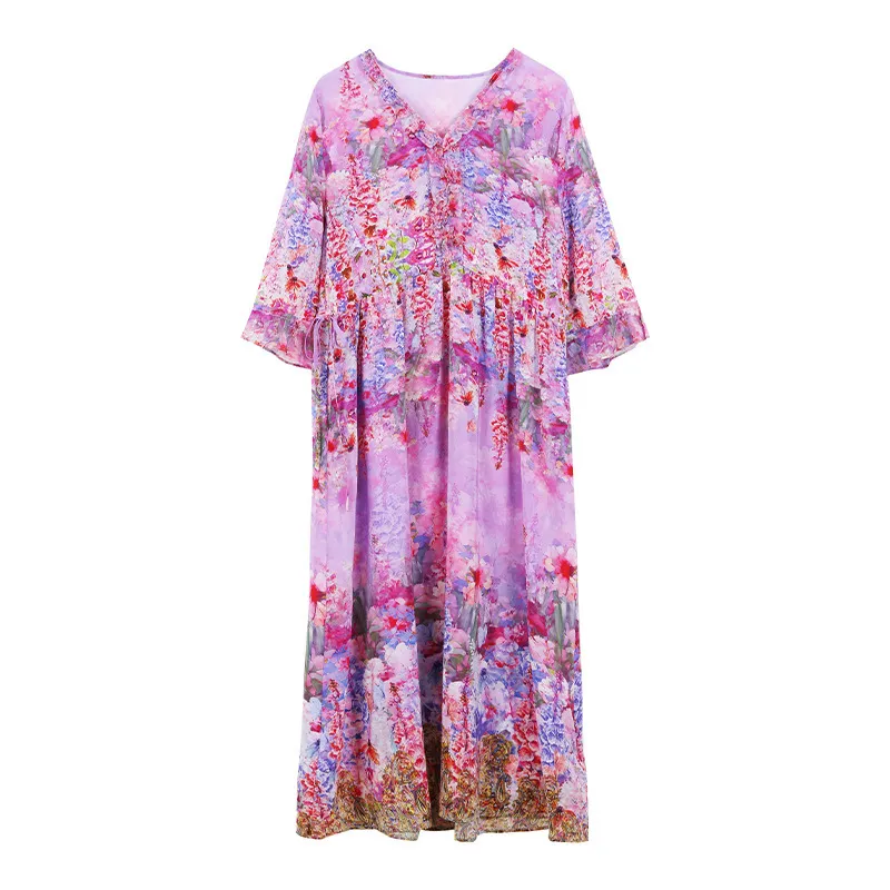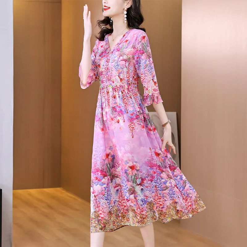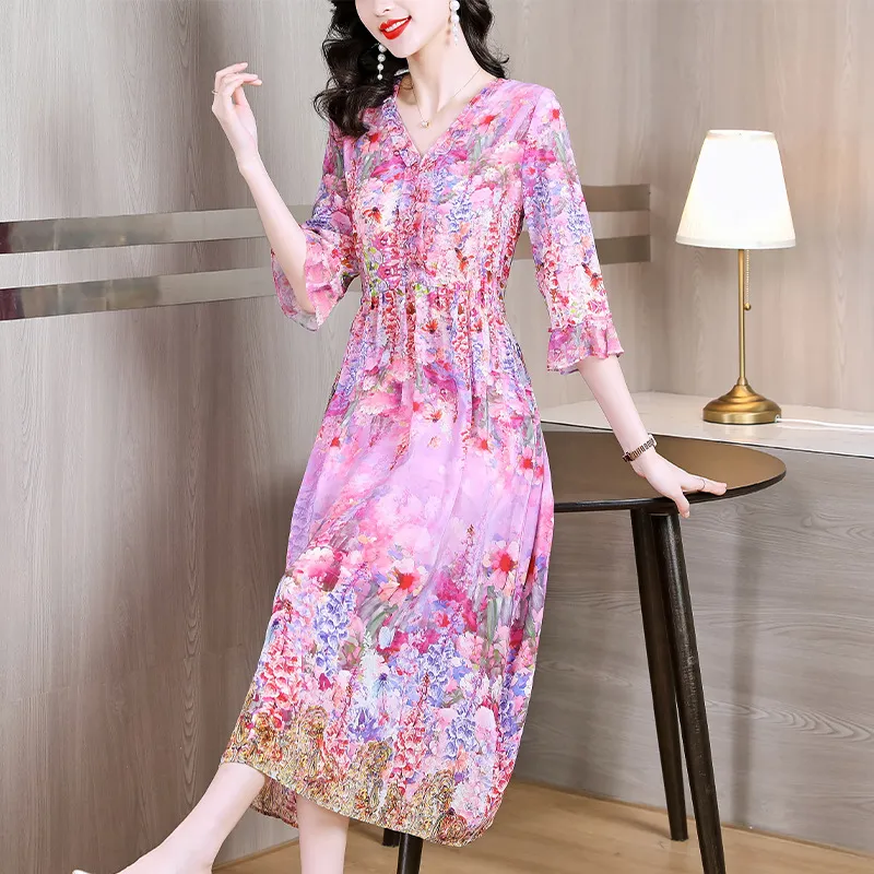 衣都精品- 2023新款遮肉顯瘦長款碎花連衣裙