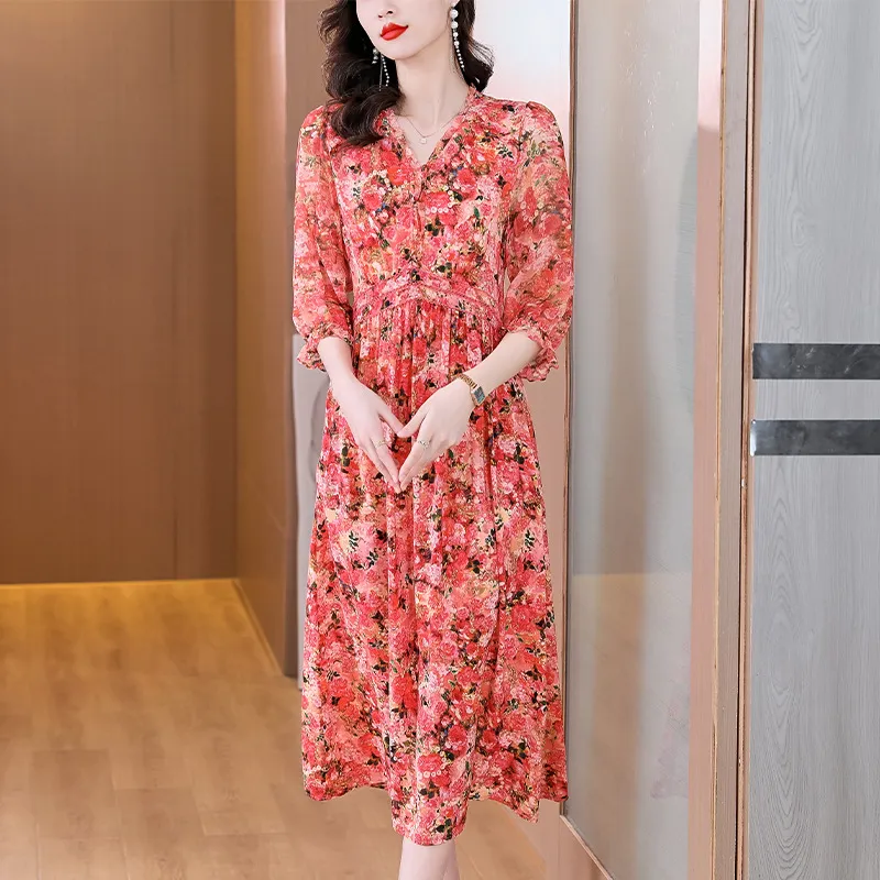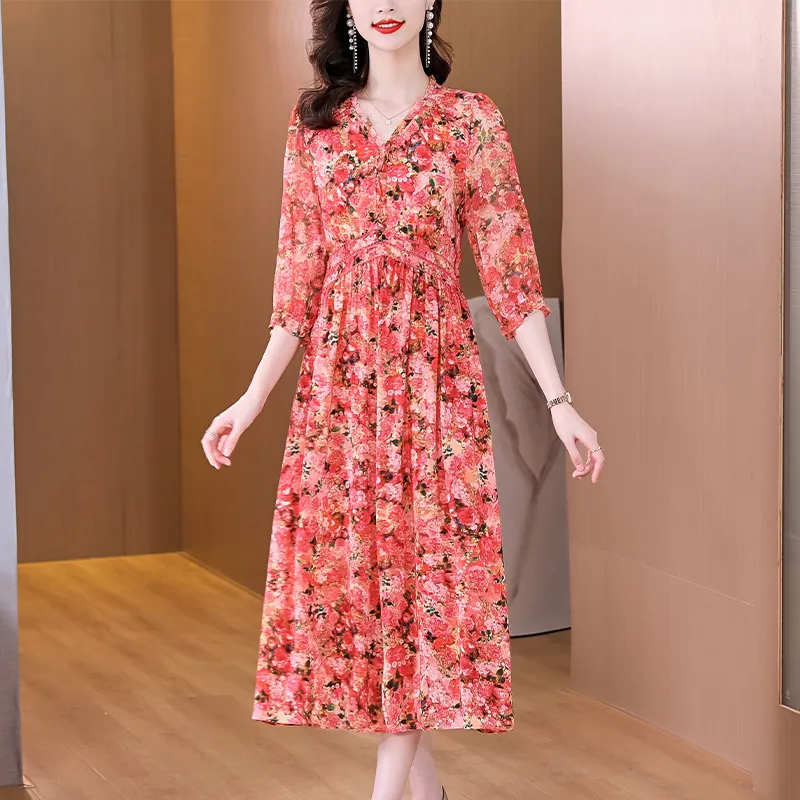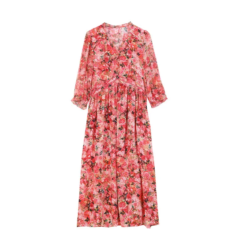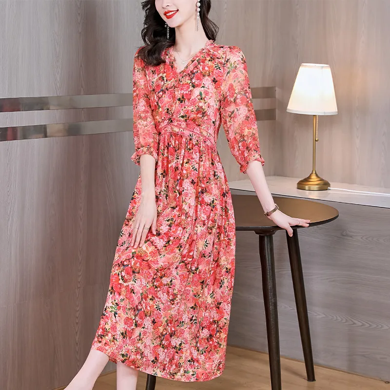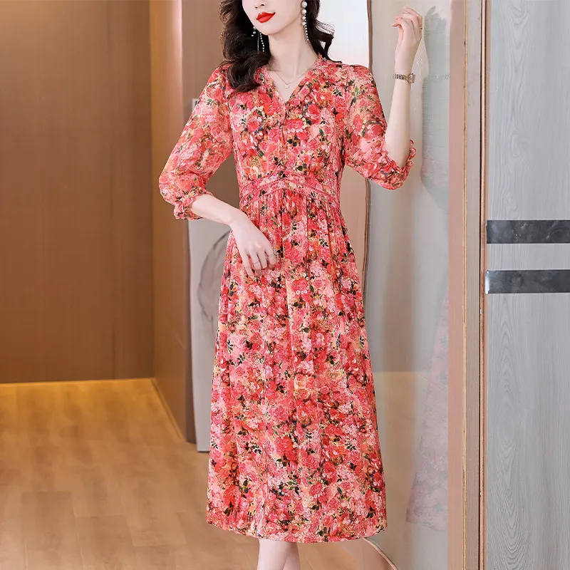 衣都精品- 2023新款遮肉顯瘦長款碎花連衣裙