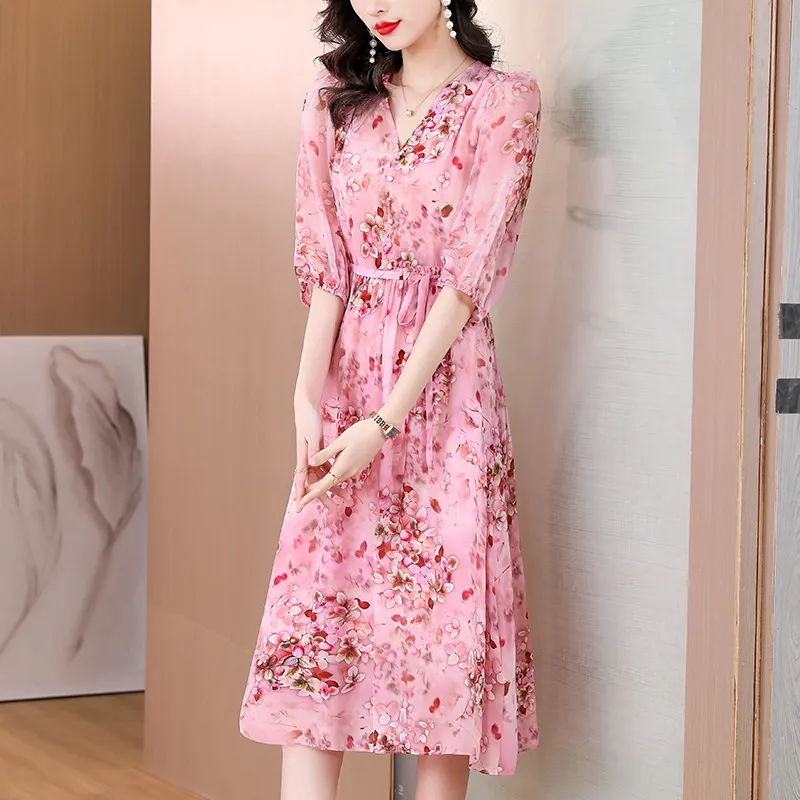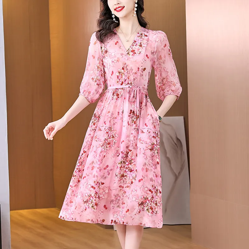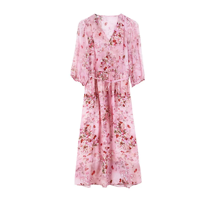 衣都精品- 2023新款時尚甜美減齡V領碎花連衣裙