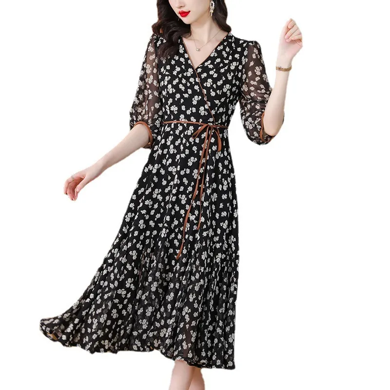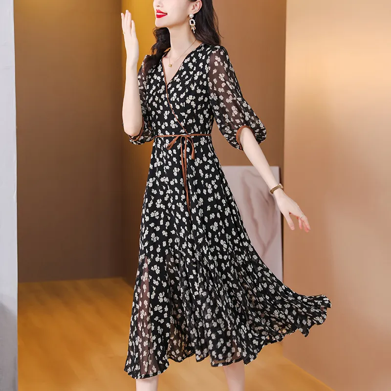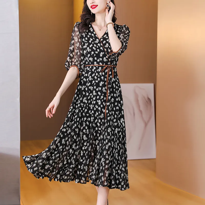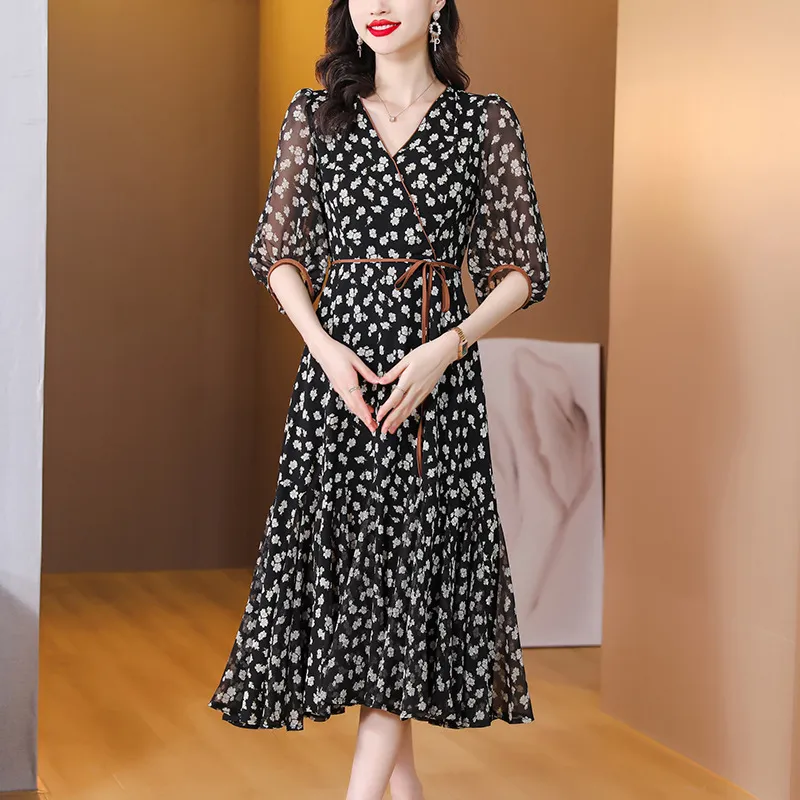 衣都精品- 2023新款時尚甜美減齡V領碎花連衣裙