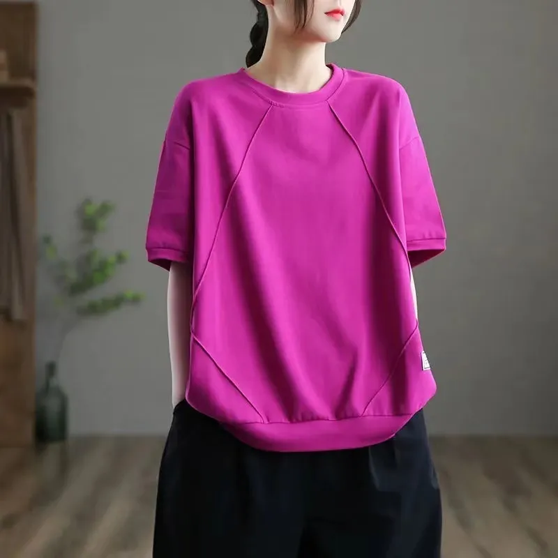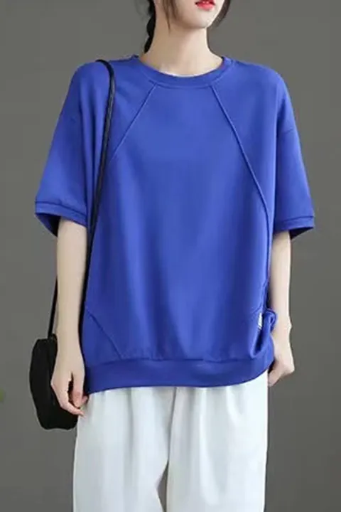 衣都精品- 2023新款圓領休閒百搭純色短袖上衣