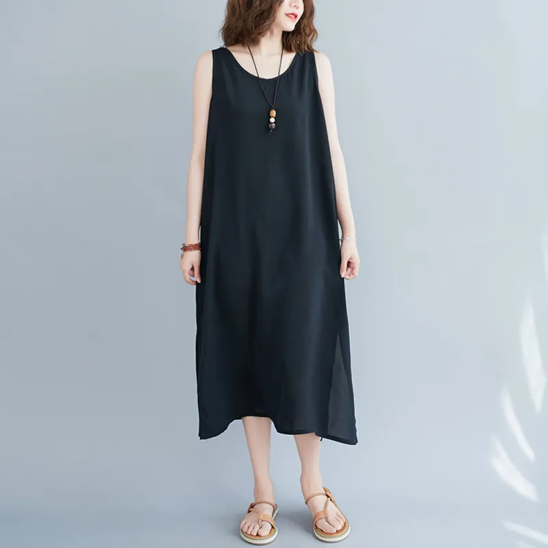 衣都精品- 2023新款無袖圓領開叉長款背心裙