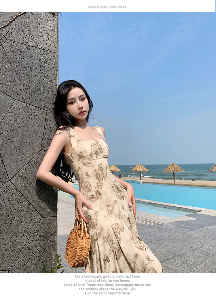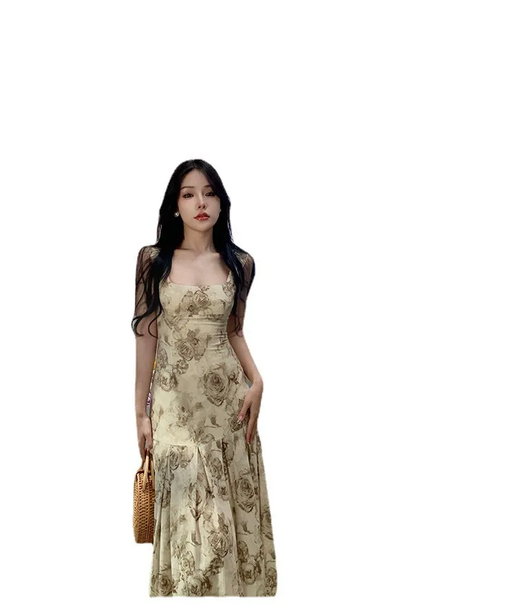 衣都精品- 2023新款法式玫瑰花高級感吊帶連衣裙